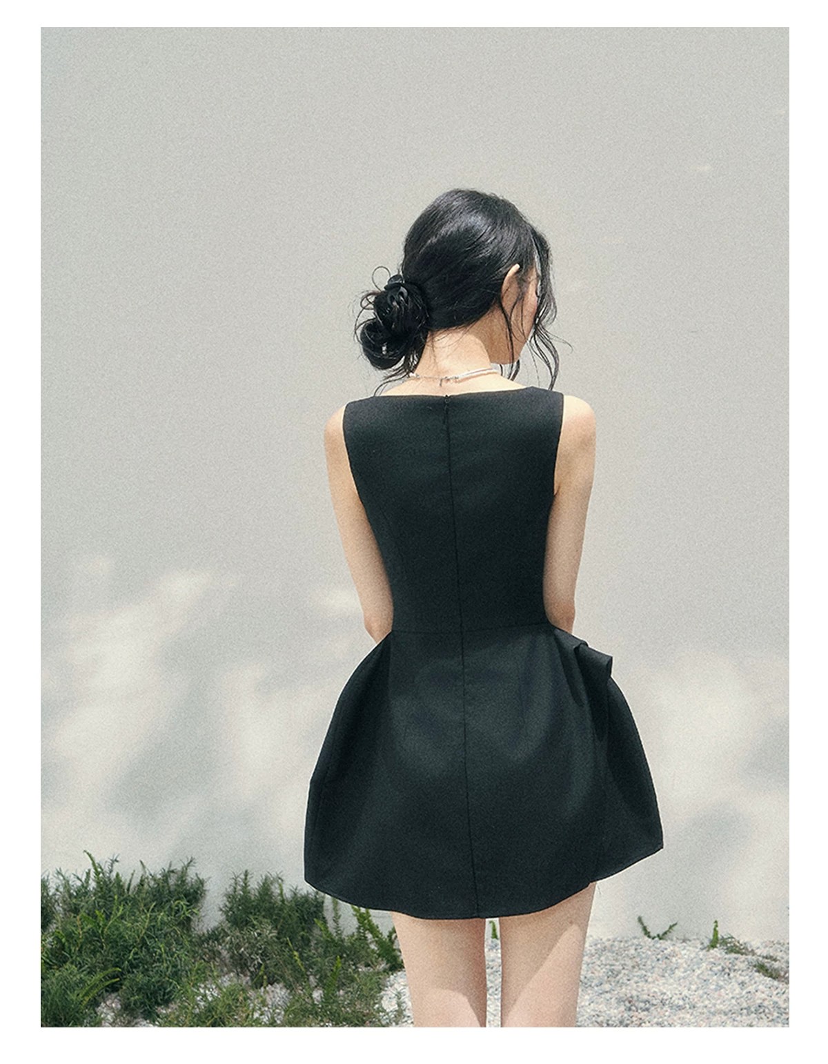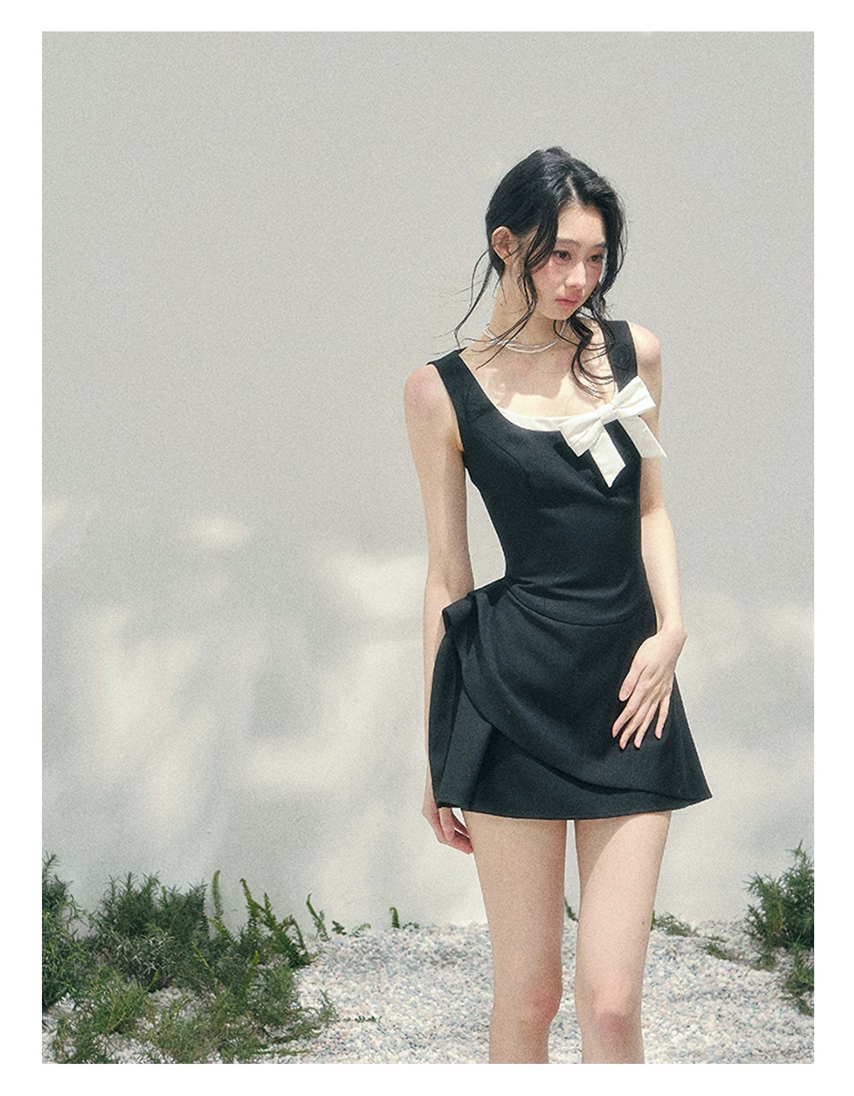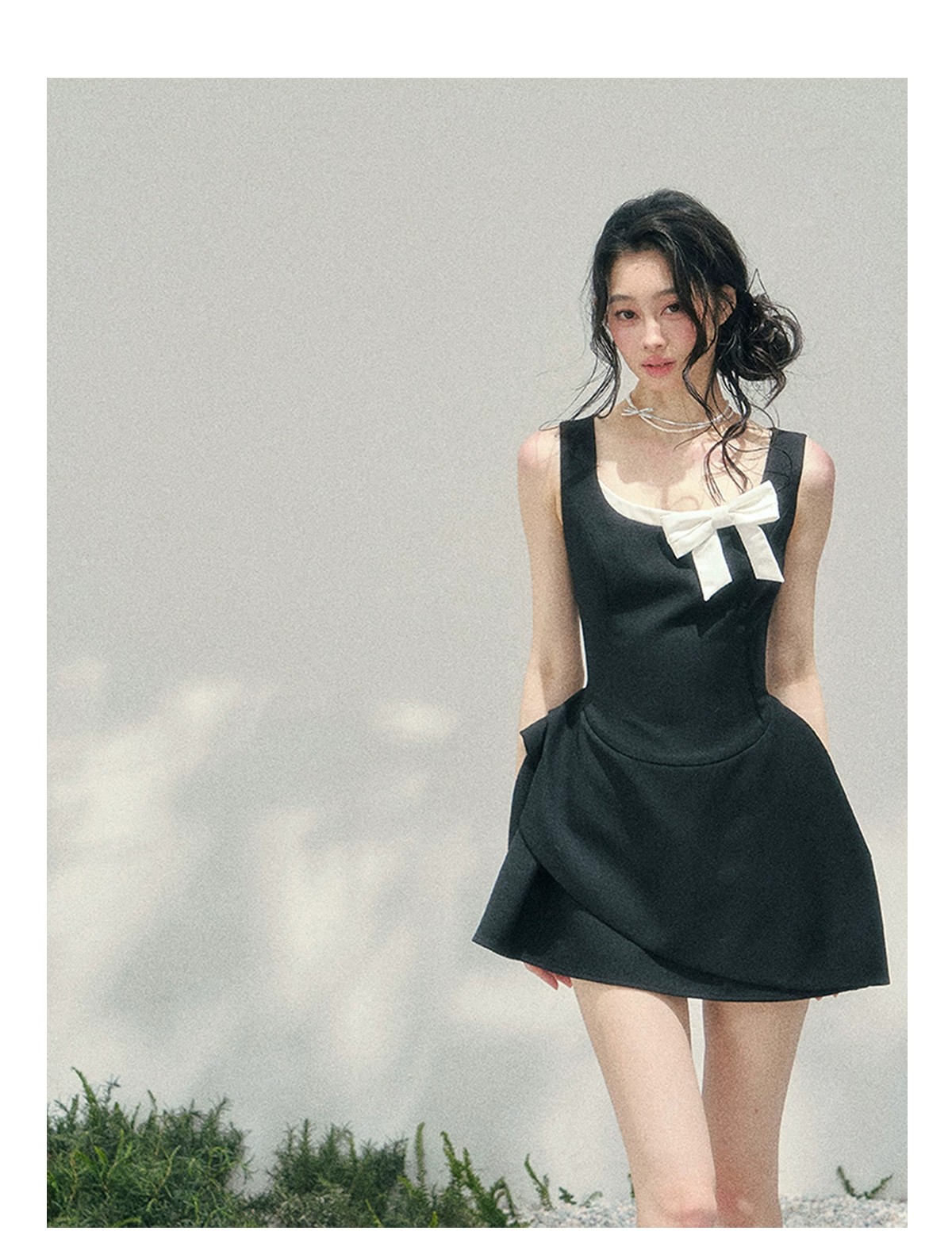 skinless 하얀 백조 프랑스식 u 칼라 진자 중간 길이 드레스 얼음 센스 높음 폭탄 허리 수축 자카드 디자인
