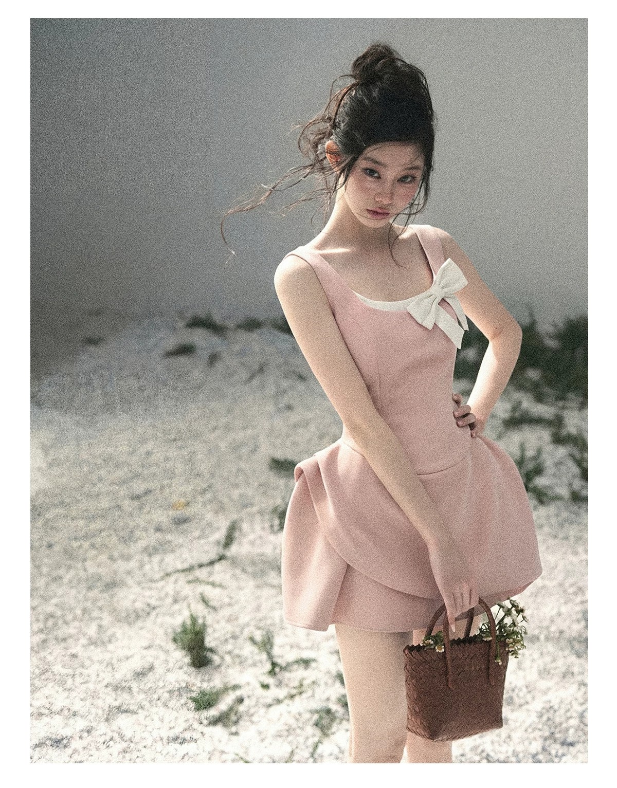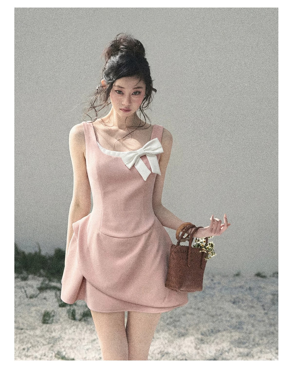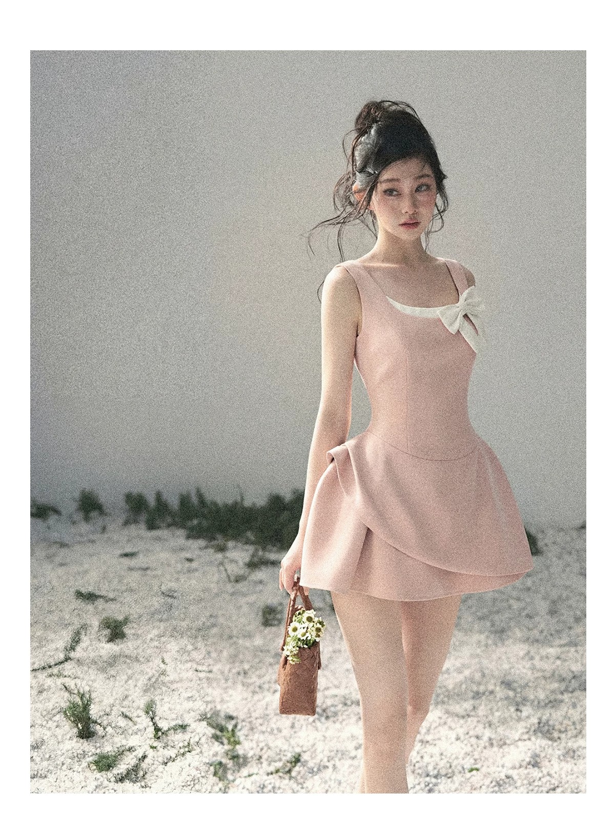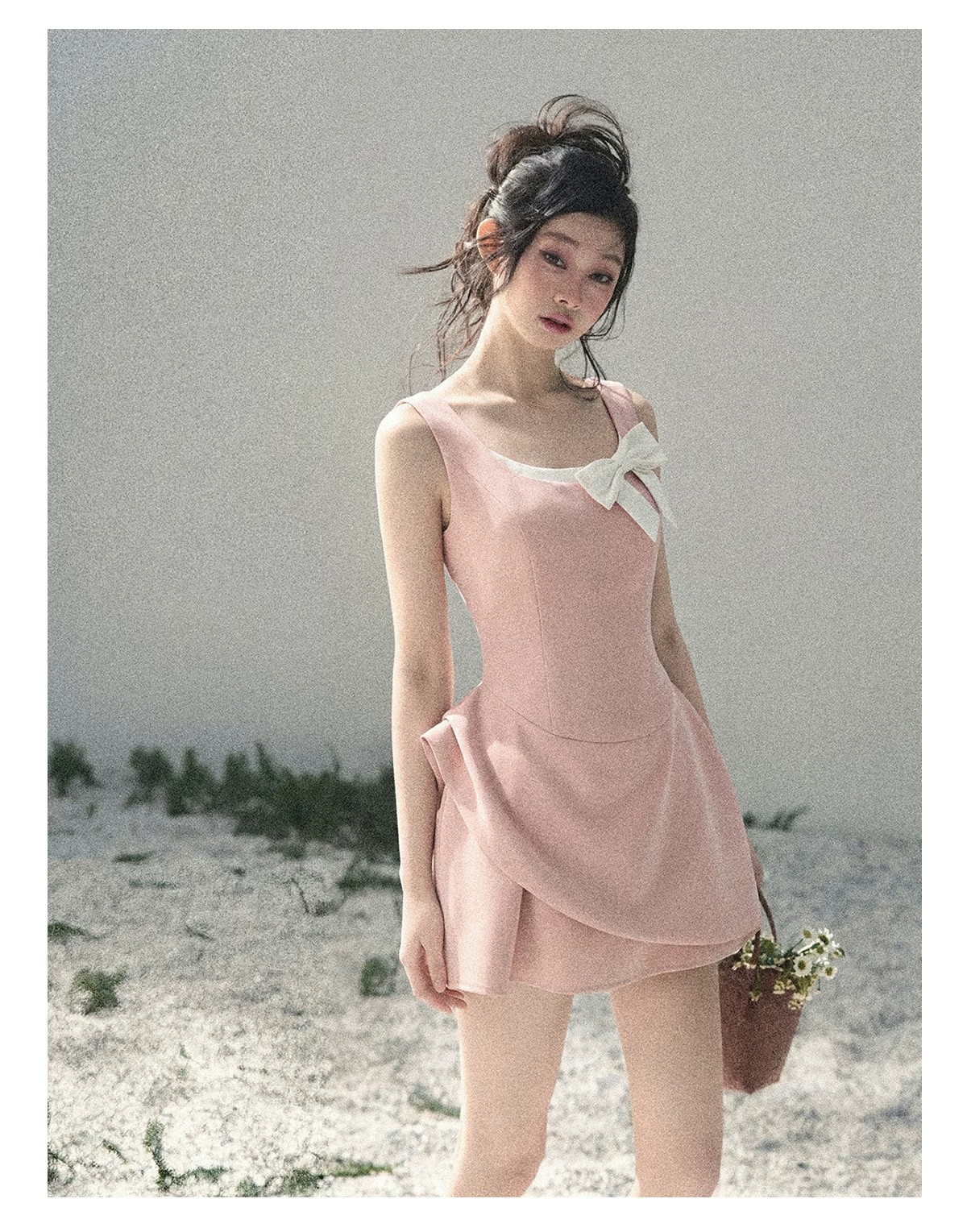 le rouge 주 아름다움 안개 실 잉 꿈 소녀 몽환 핑크색 꽃무늬 유럽 오간자 조끼 원피스