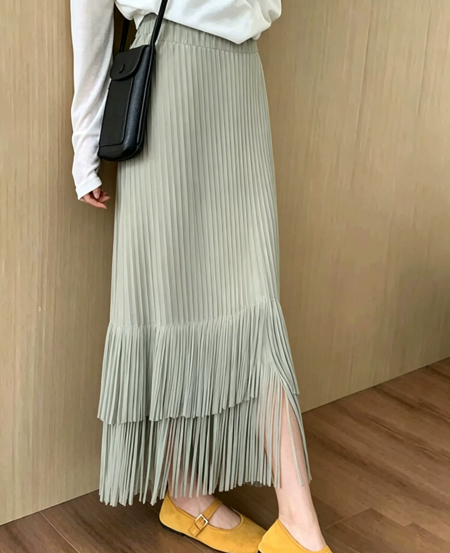 하이웨이스트 슬림해 보이는 술 반신 스커트 여성 여름 다용도 롱 스커트 불규칙 플리츠 치마 패션 외국 가스 치마