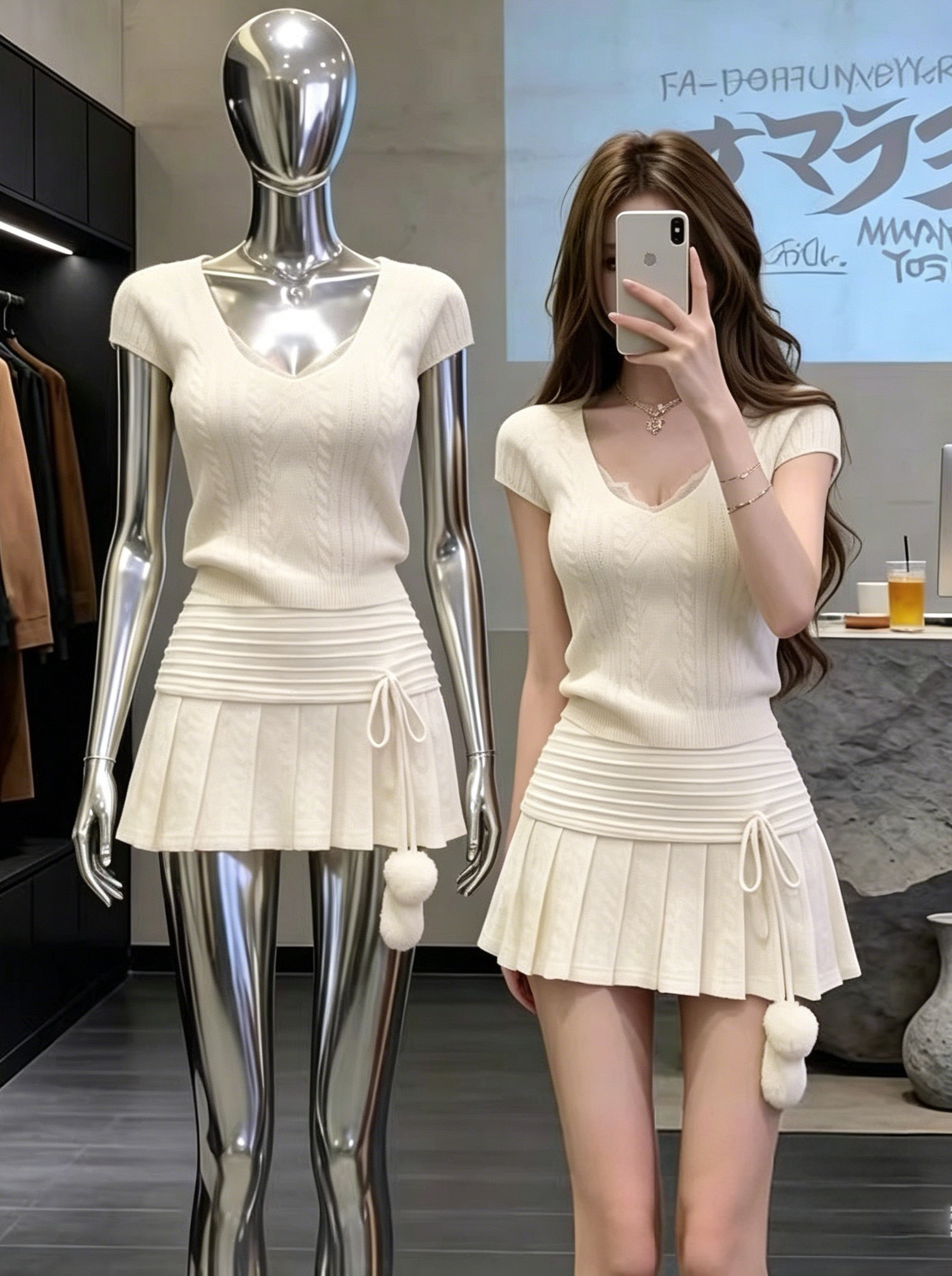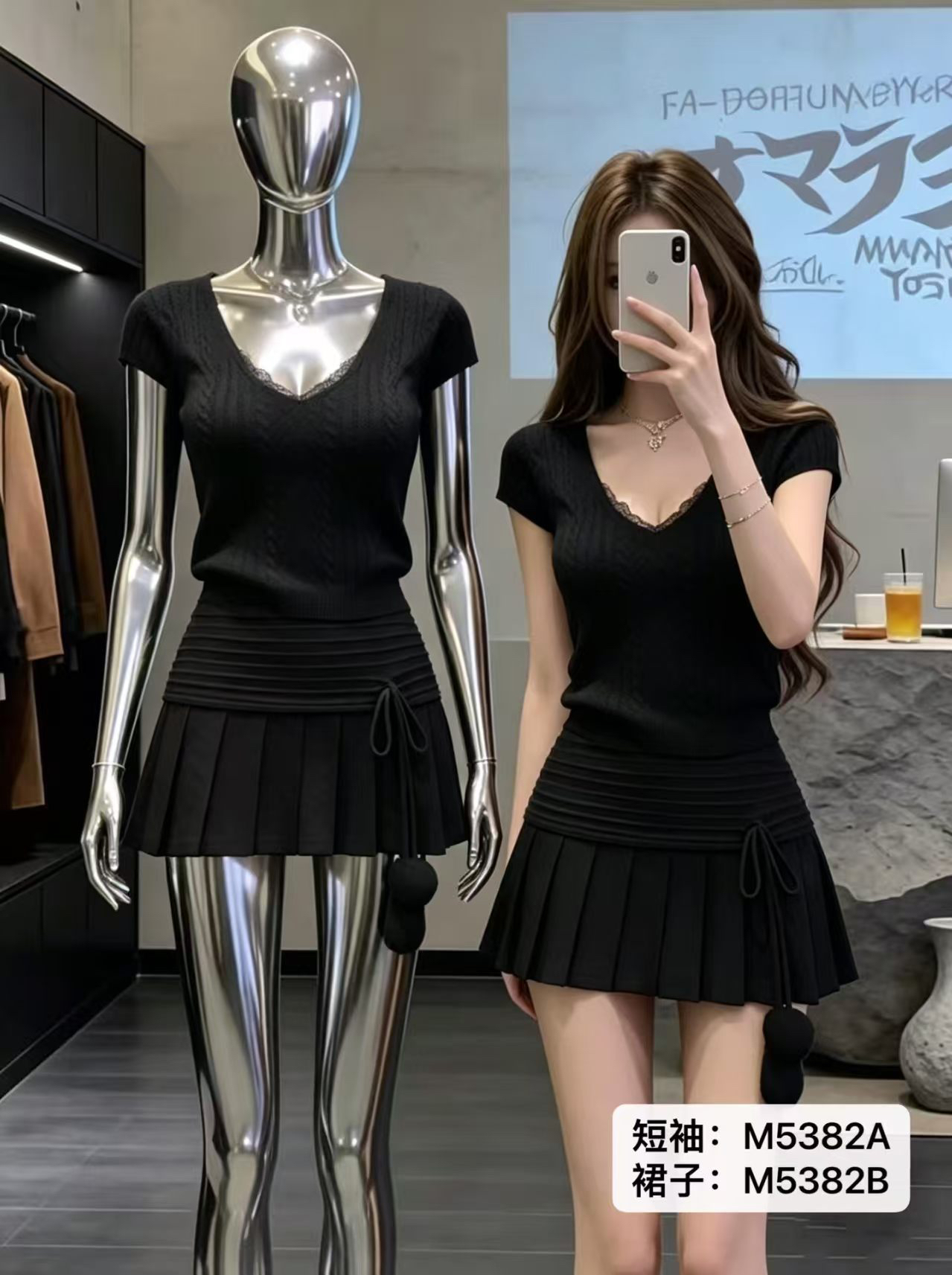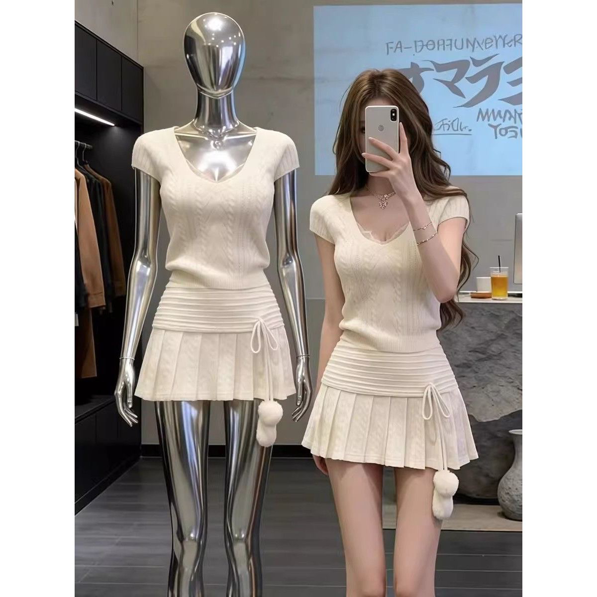 2026 슈퍼 화재 한 부서 착용 가져 가라. 아름다운 전체 집합 초여름 고유 한 소녀 센스 핫걸 맨위 반신 스커트 투피스 세트