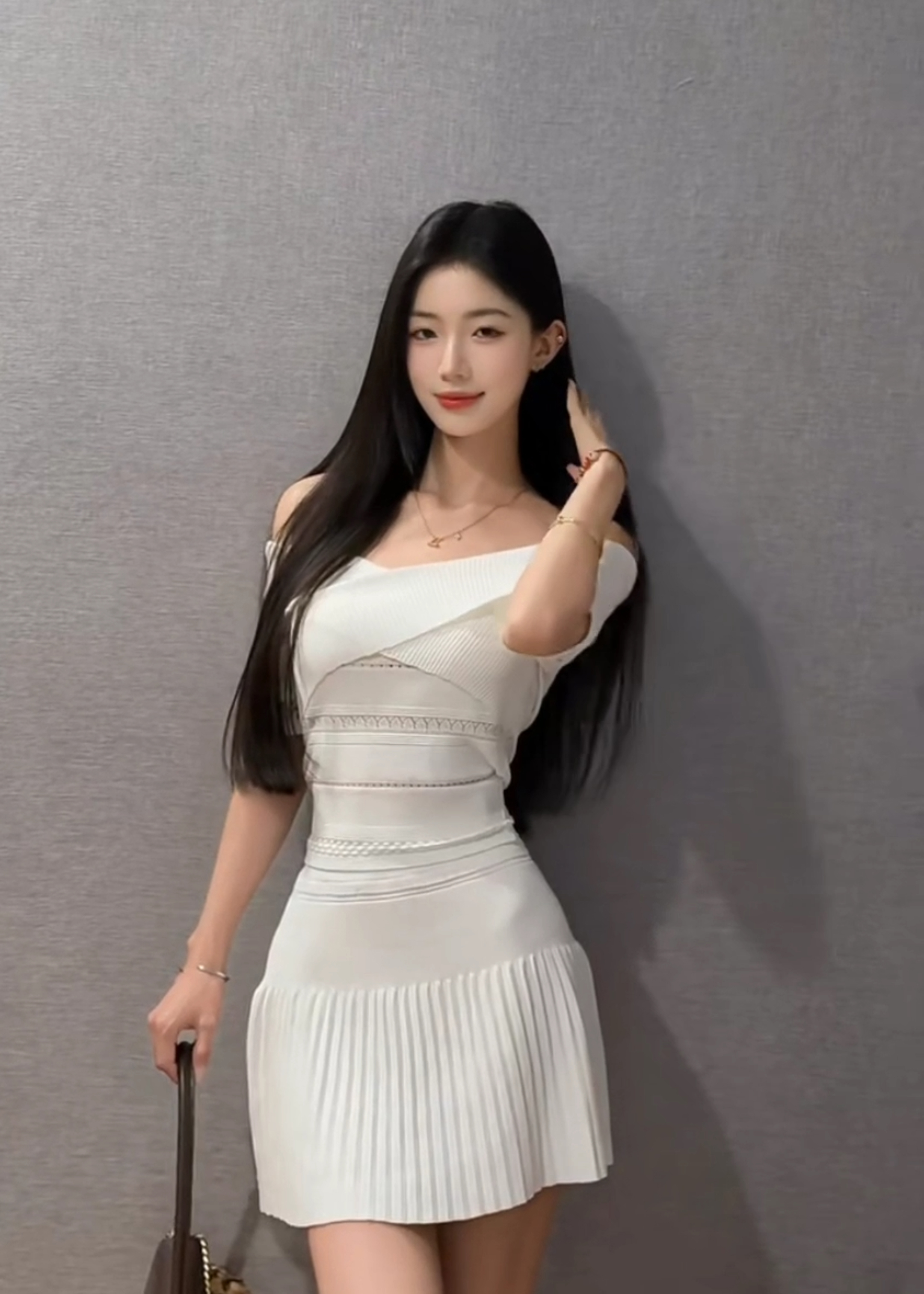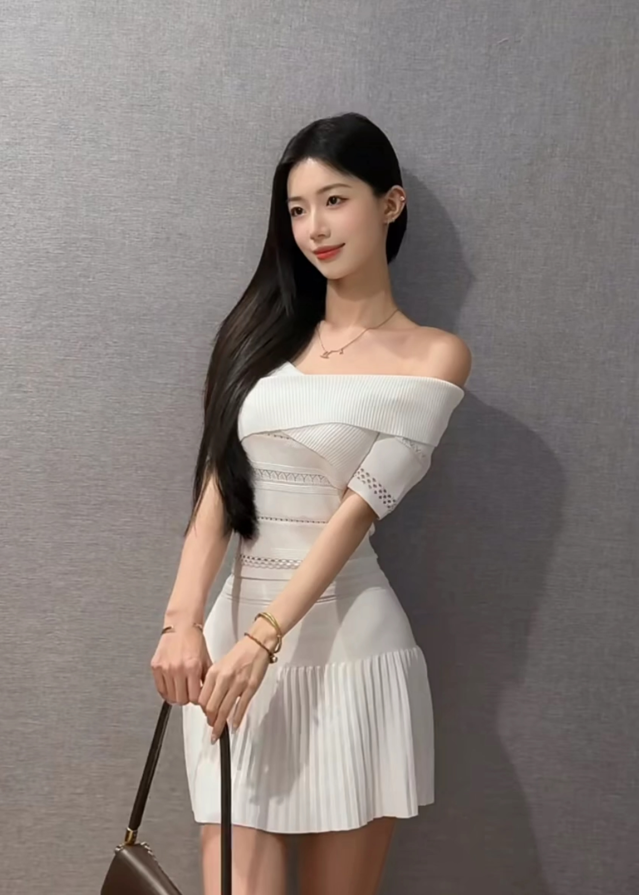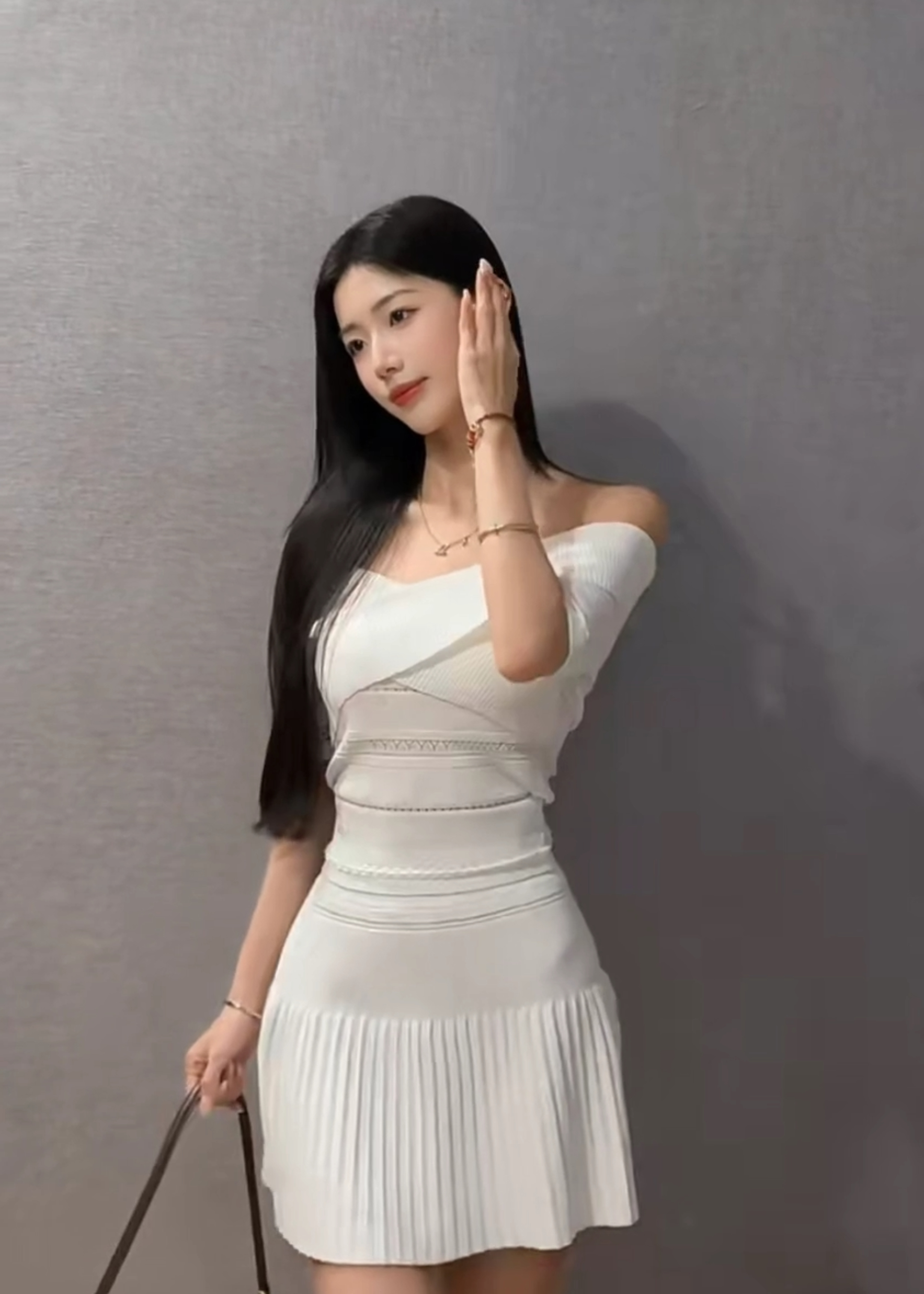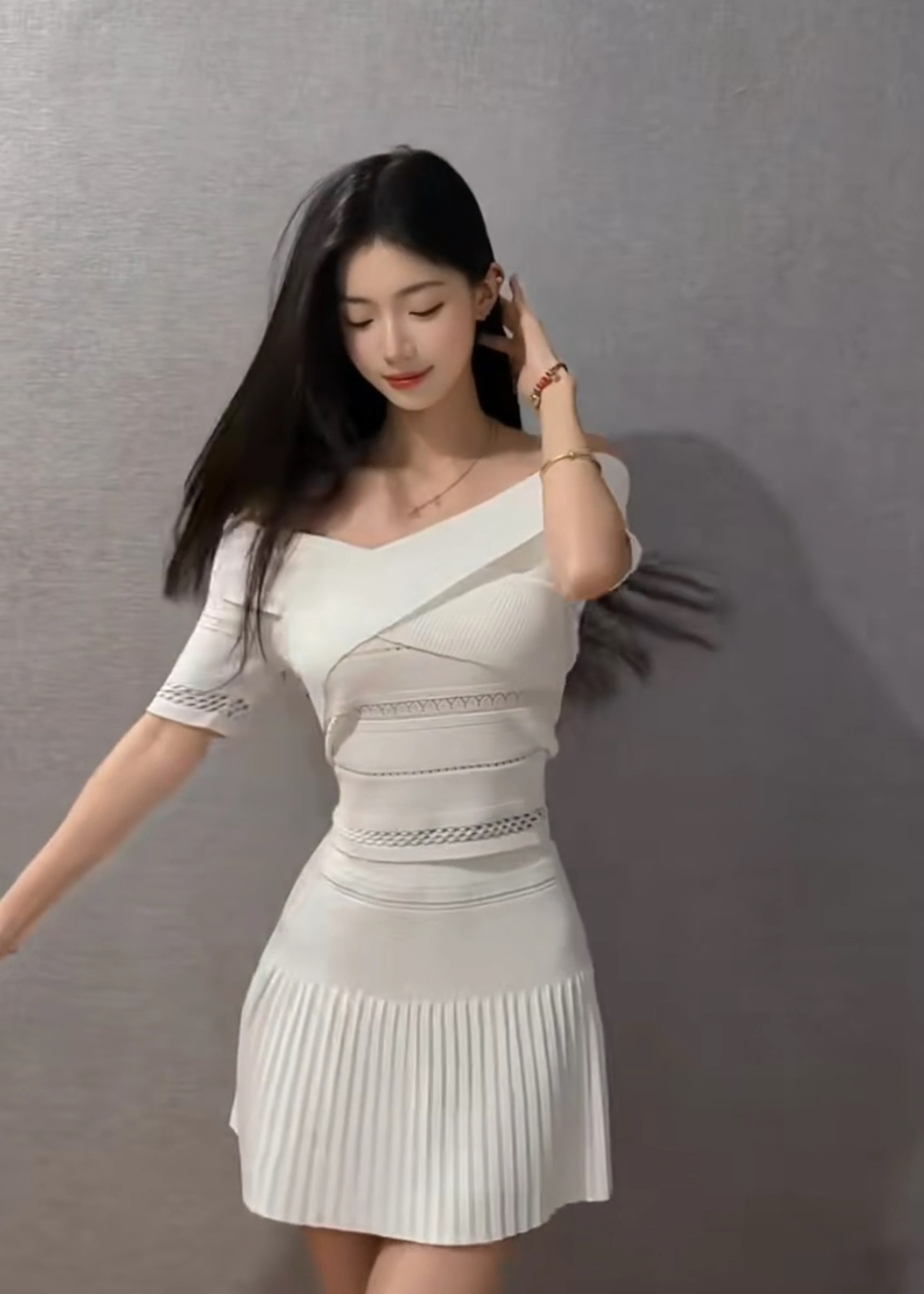 홀로우 아웃 니트 드레스