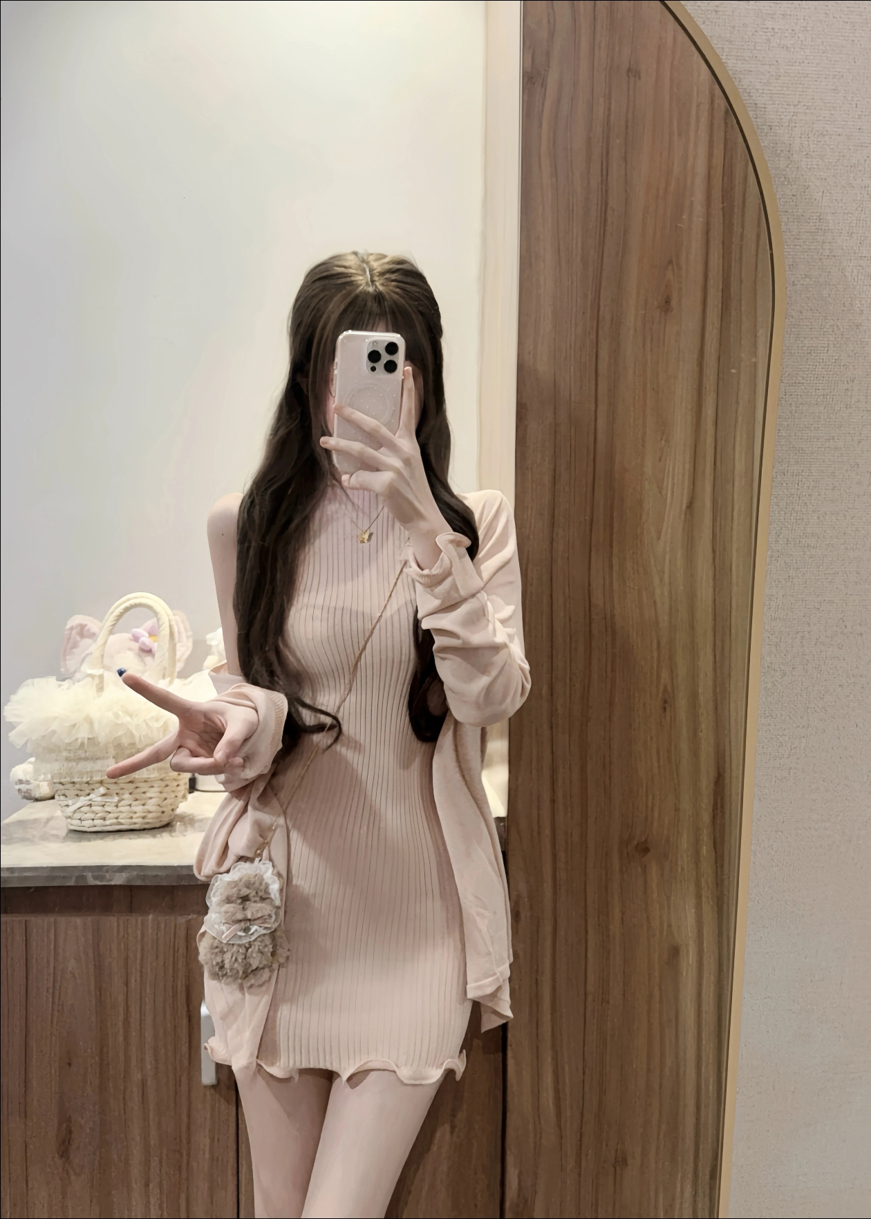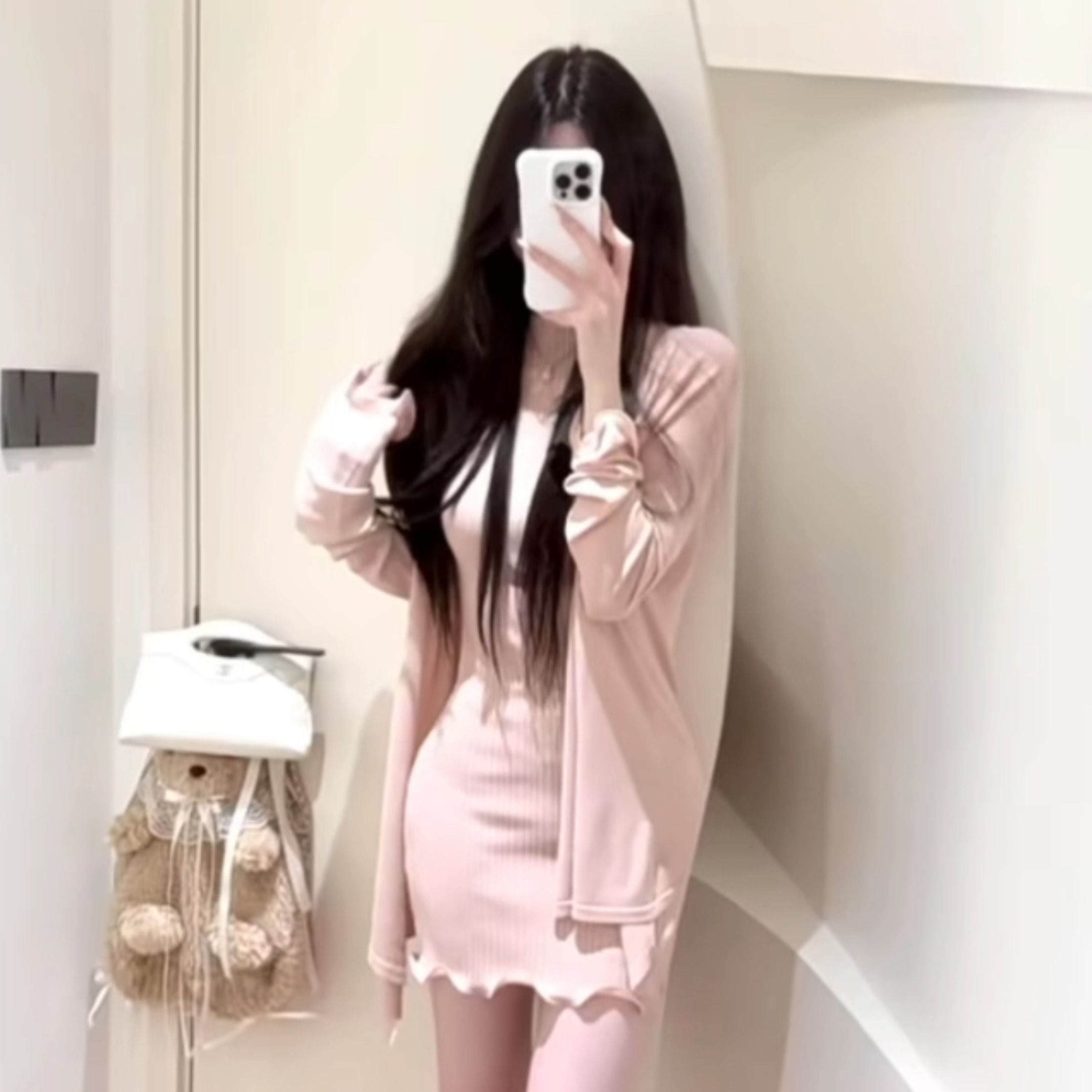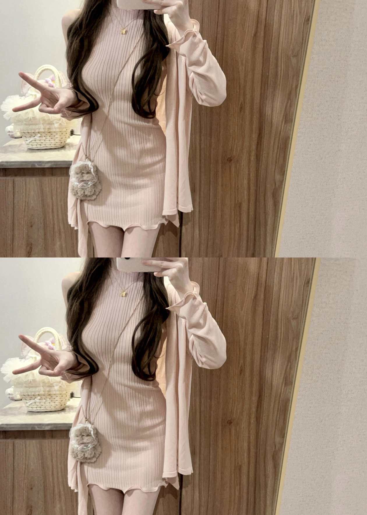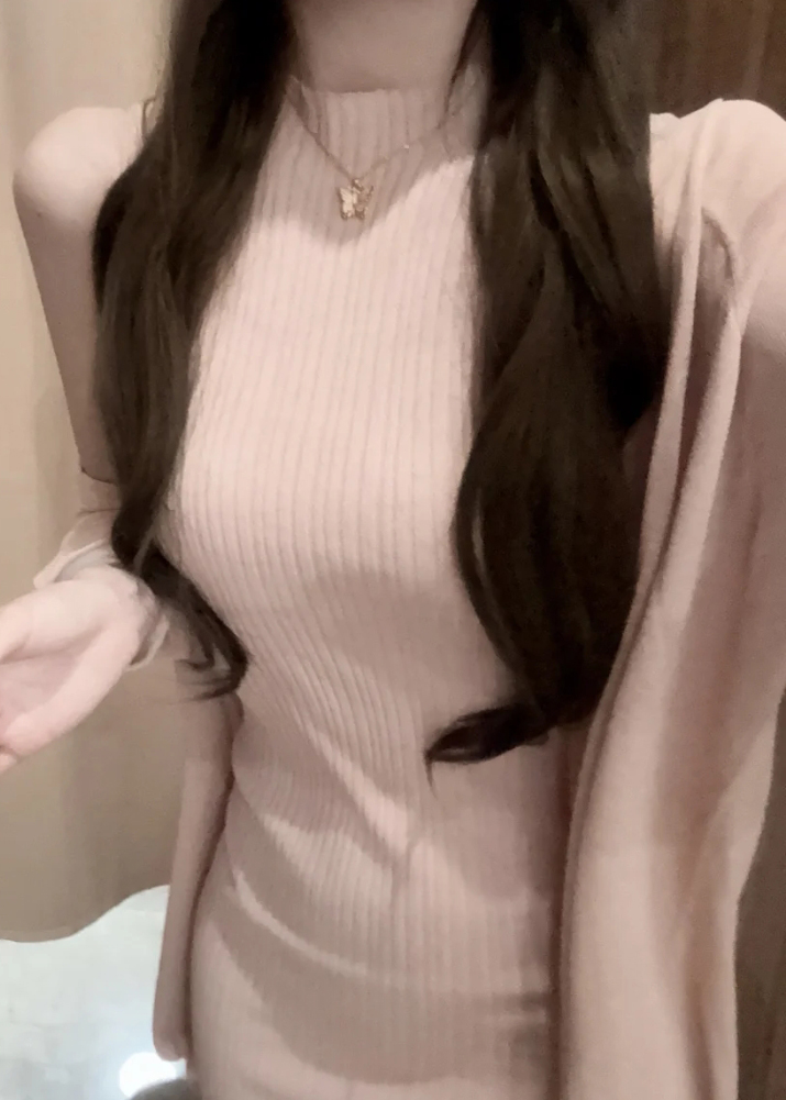 홀로우 아웃 니트 드레스