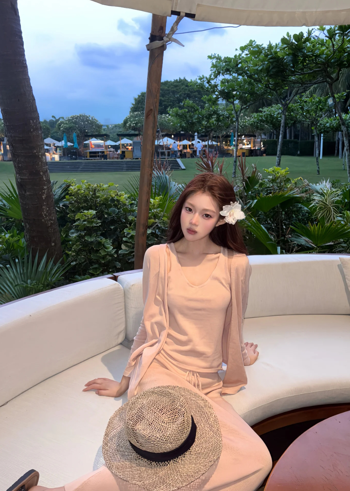 순수한 욕망 바람 프랑스식 홀로우 아웃 슬립 드레스 봄 여름 부드러운 느긋한 품격 숄 롱 스커트 세트