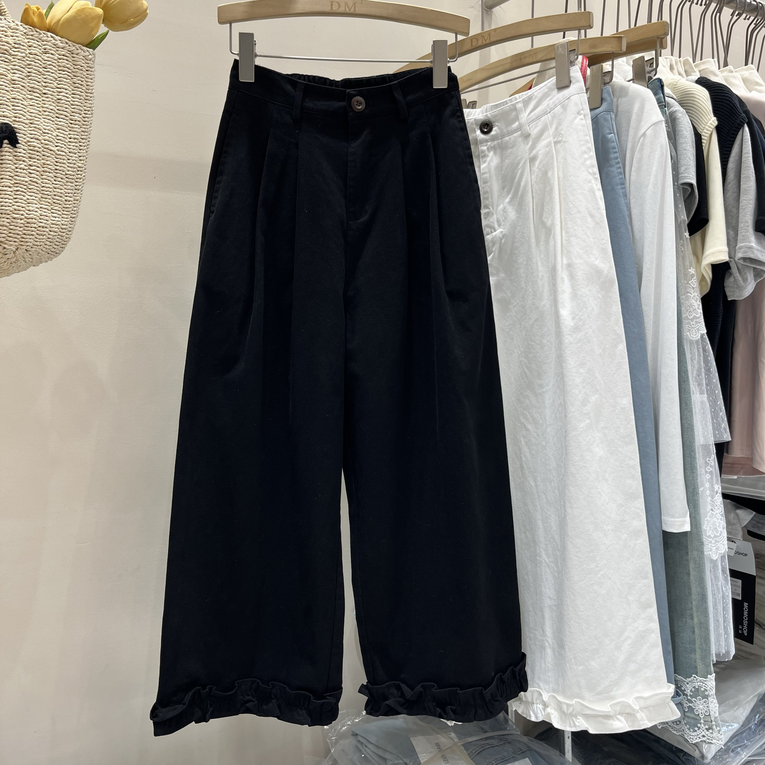 여름 섹션 2026 새로운 프릴 도루 센스 와이드 레그 팬츠 캐주얼 바지 여성