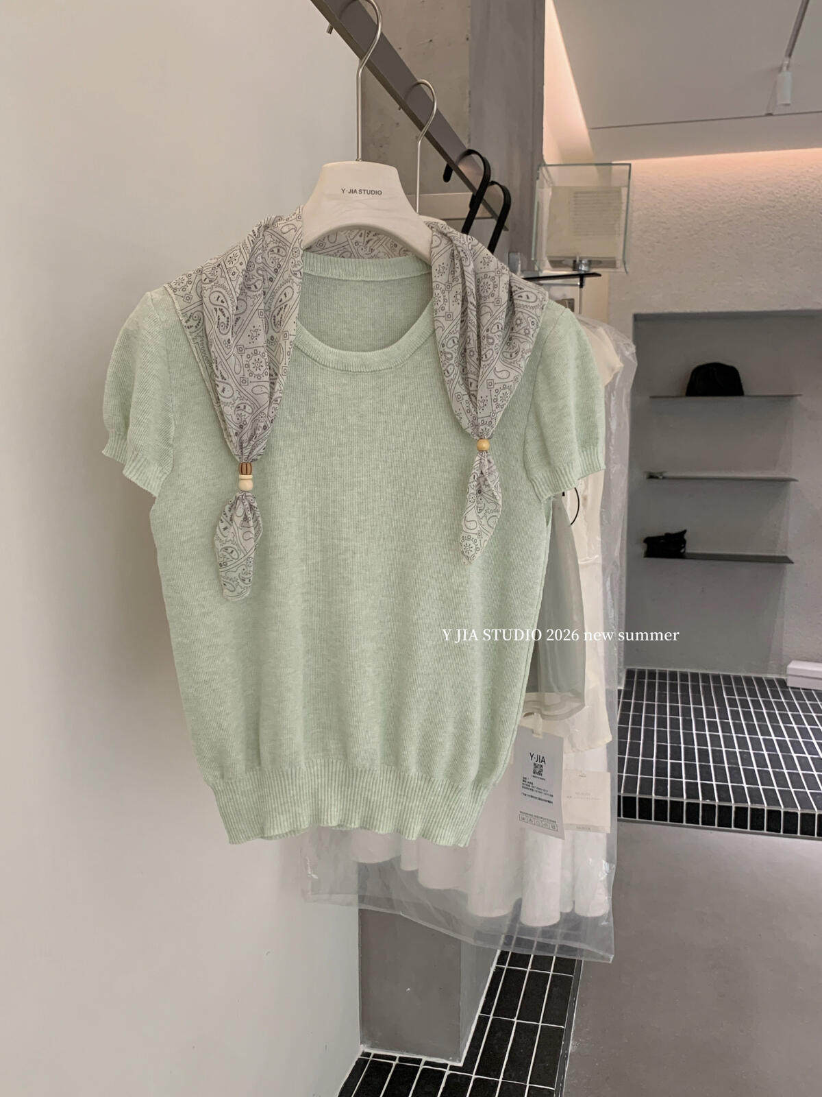 2026 여름 새로운 한 부서 캐주얼 다용도 네클라인 작은 마크 아래 진자 펌프 로프 스트라이프 반팔 티셔츠 여성