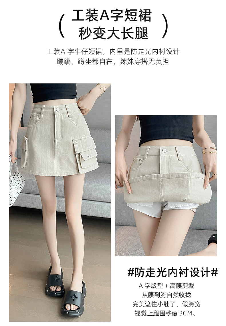 실사 워크웨어 기타 주머니 데님 미니 스커트 여성 2026 여름 새로운 하이웨이스트 슬림해 보이는 노출 방지 타이트 스커트 반신 스커트