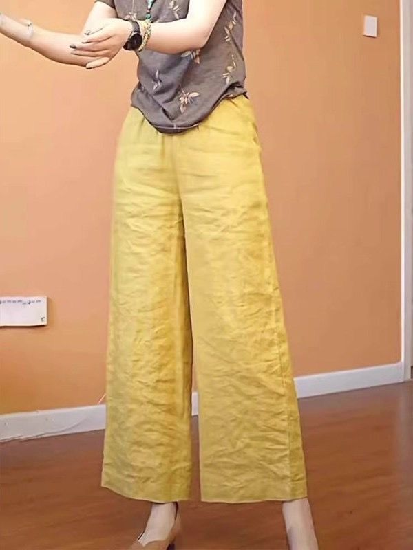상쾌 여름 화이트 블루 색상 시스템 면 린넨 레이스 와이드 레그 팬츠 통기성 다용도 슬림해 보이는 9 포인트 다용도 캐주얼 바지