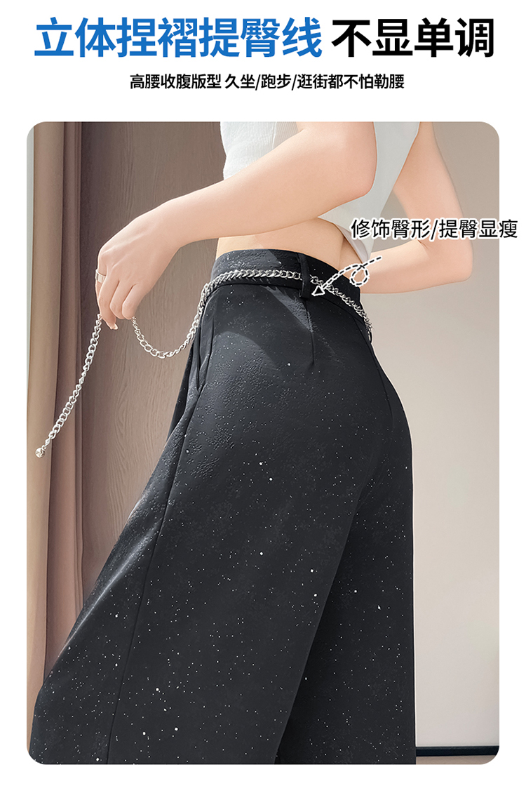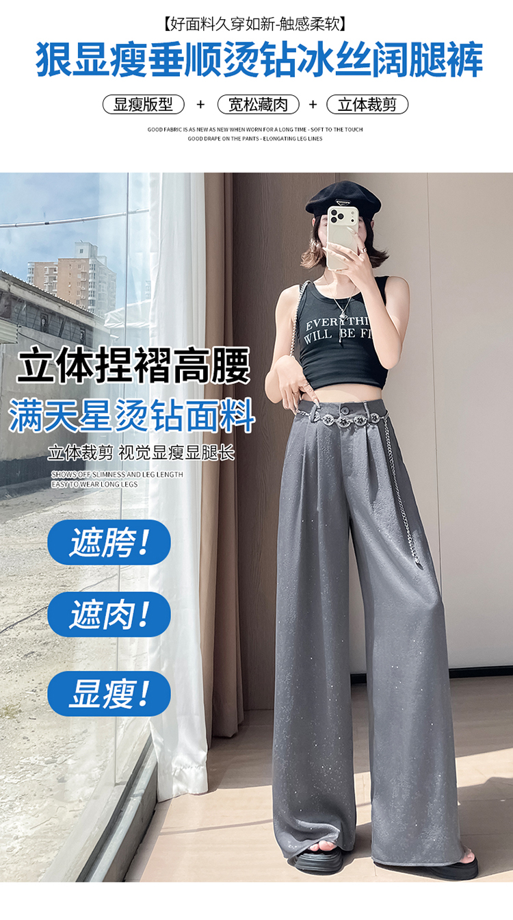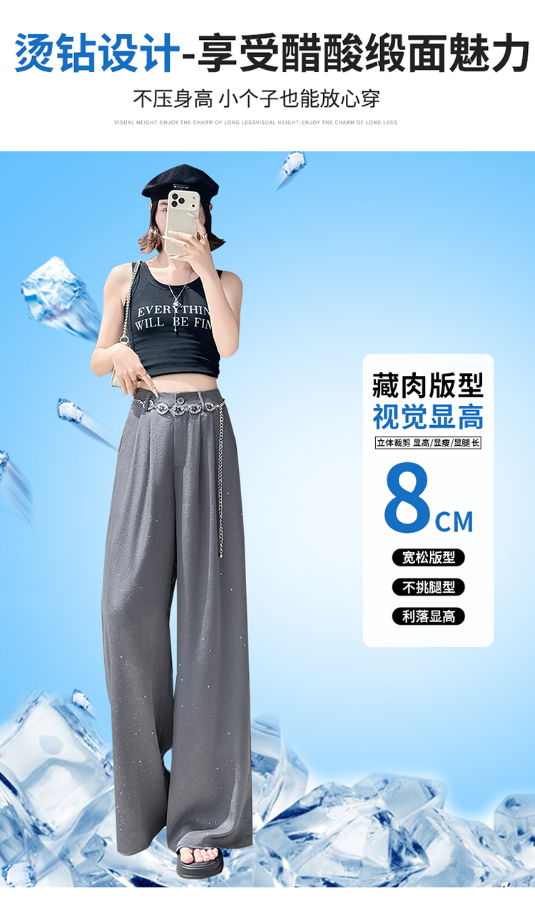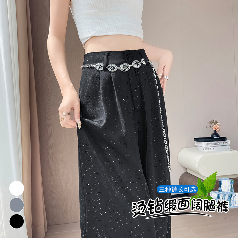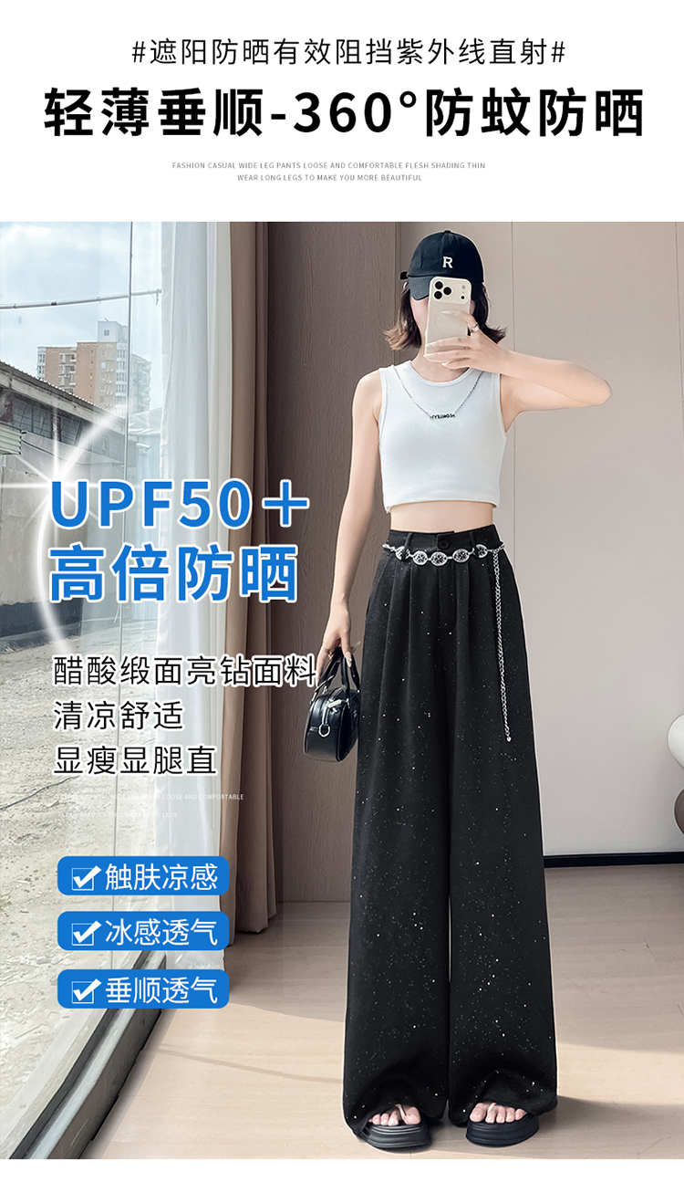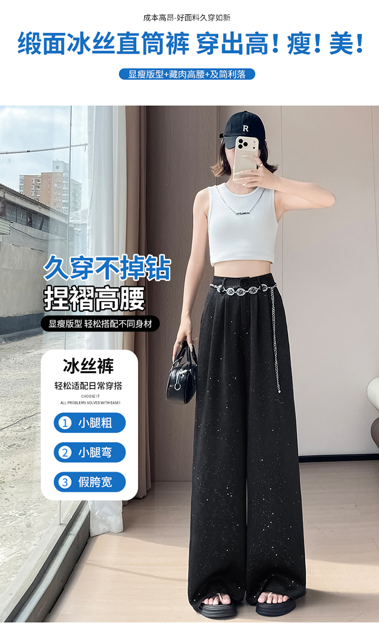 실사 2026 여름 새로운 밝은 훈련 얼음 실크 바지 아세트산 새틴 하이웨이스트 스트레이트 핫픽스 자외선 차단 와이드 레깅스 바지