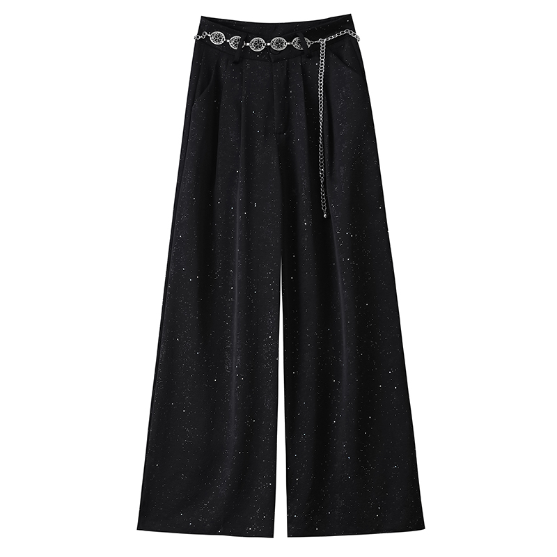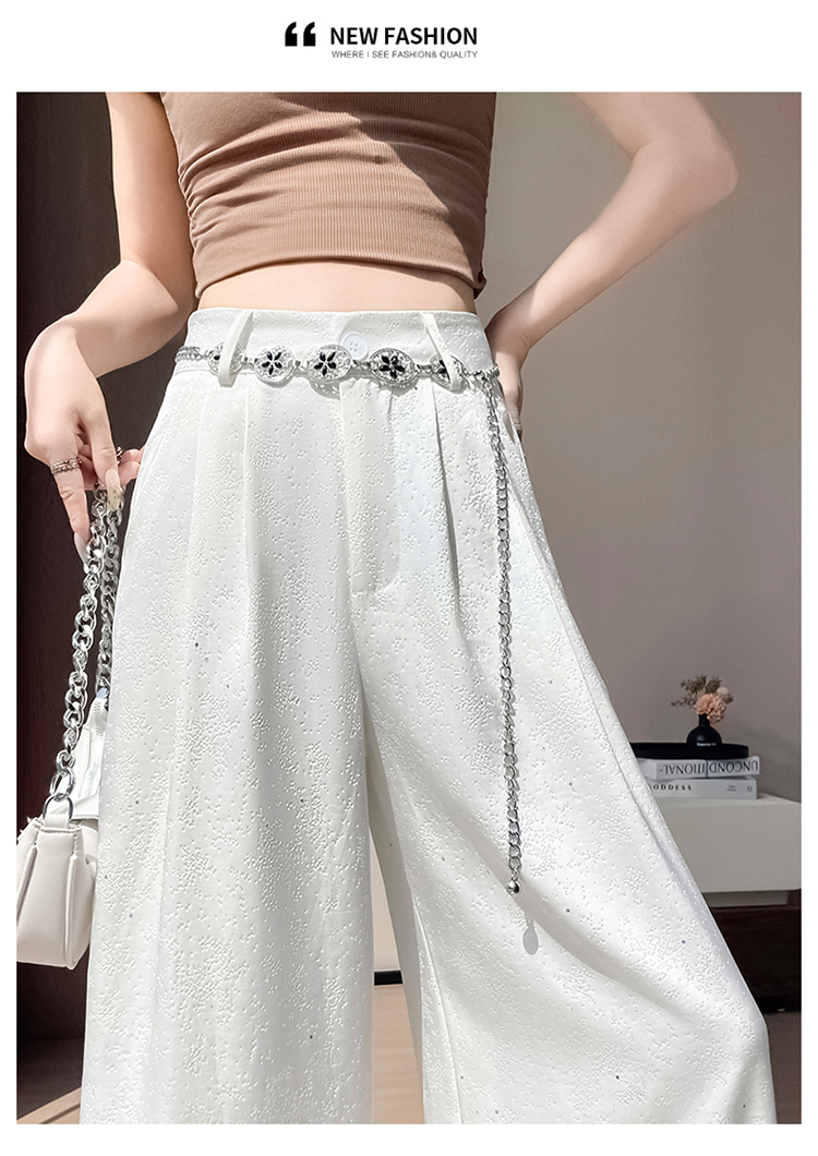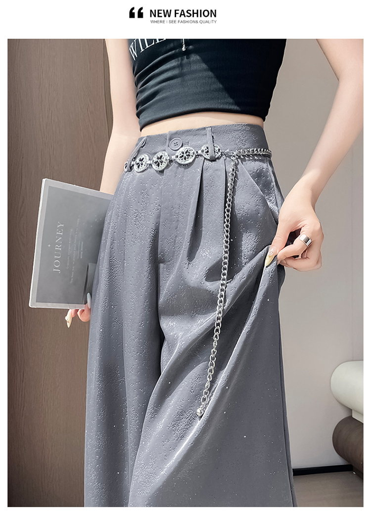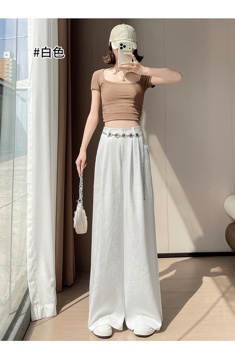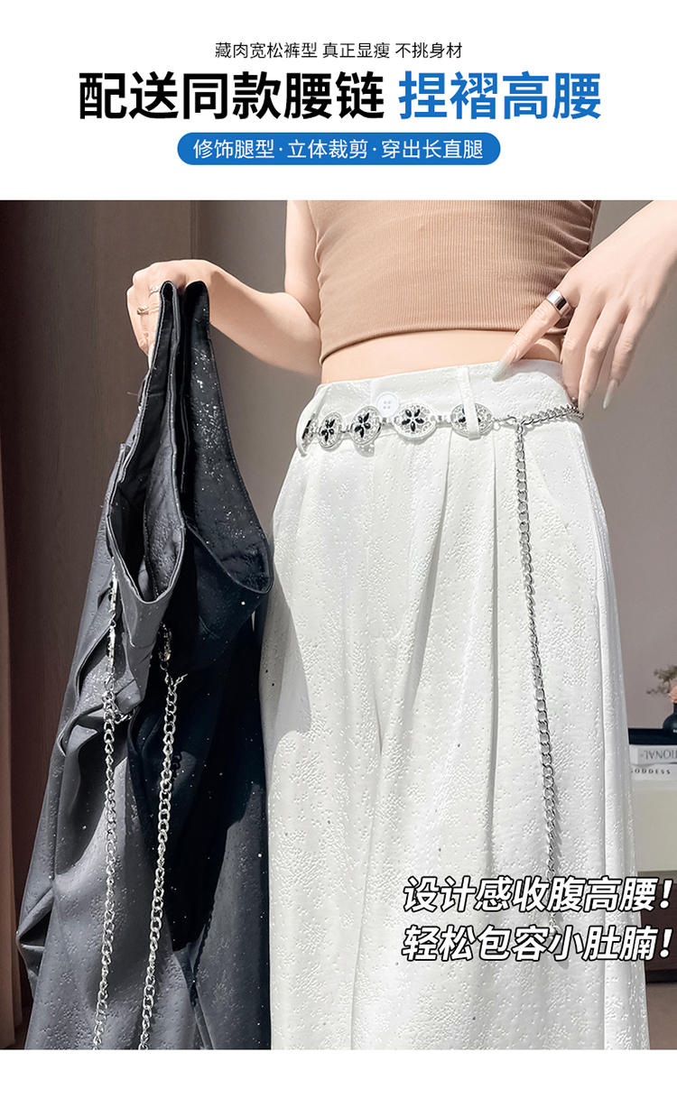 실사 2026 여름 새로운 새로운 중식 새틴 자카드 국풍 정장 바지 좁은 에디션 와이드 레그 팬츠 캐주얼 바지 여성