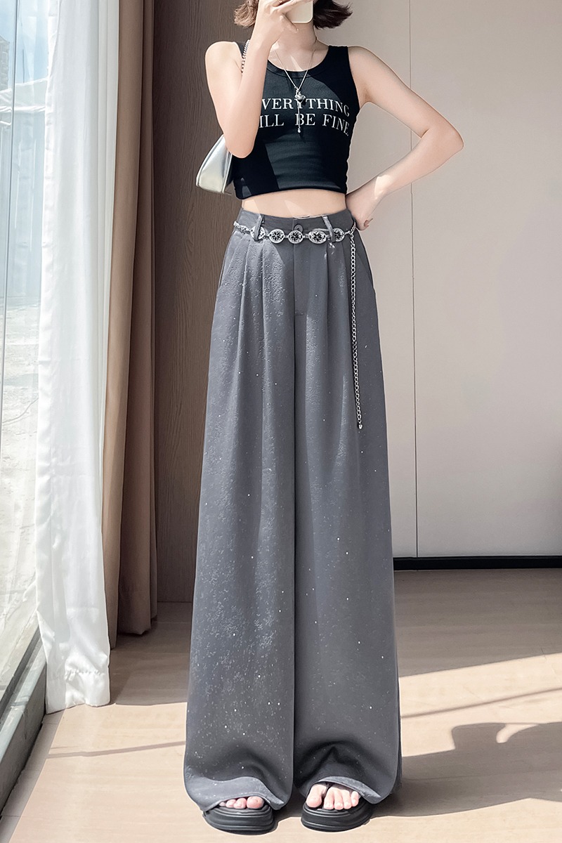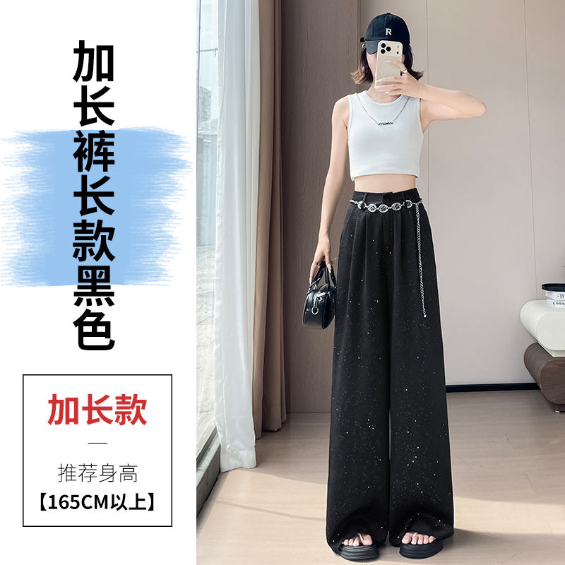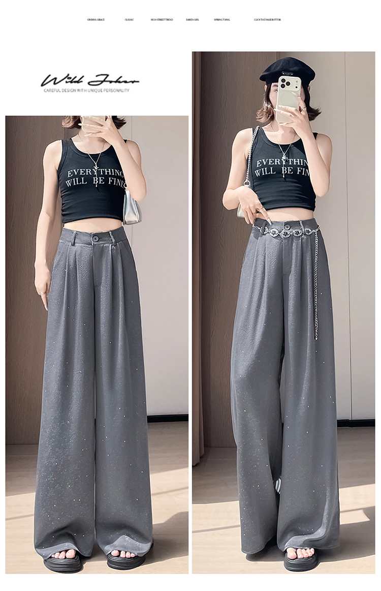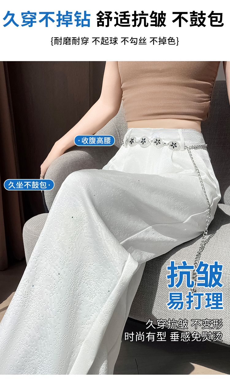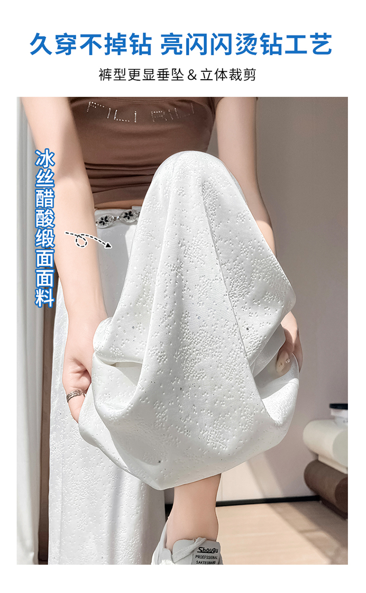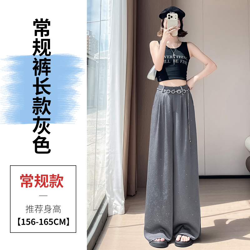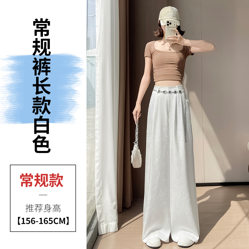 실사 2026 여름 새로운 엠보싱 아세트산 새틴 와이드 레그 팬츠 자외선 차단 얼음 실크 바지 스트레이트 캐주얼 바닥 청소 바지 여성