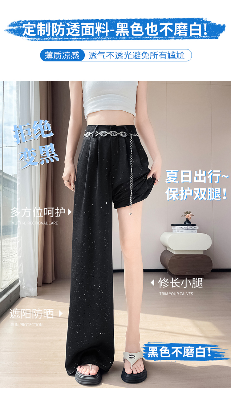 실사 2026 여름 새로운 얇은 스타일 유리 실 얼음 실크 치마바지 여성 하이웨이스트 요정 가스 펄럭 이는 자외선 차단 바지