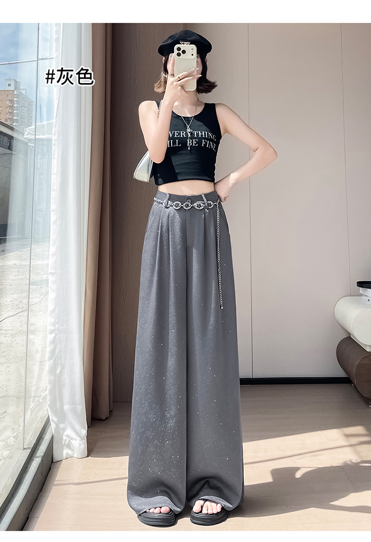 실사 2026 여름 새로운 주간 실크 아마 바지 와이드 레그 팬츠 얇은 스타일 하이웨이스트 얼음 실크 좁은 에디션 바닥 청소 바지 여성