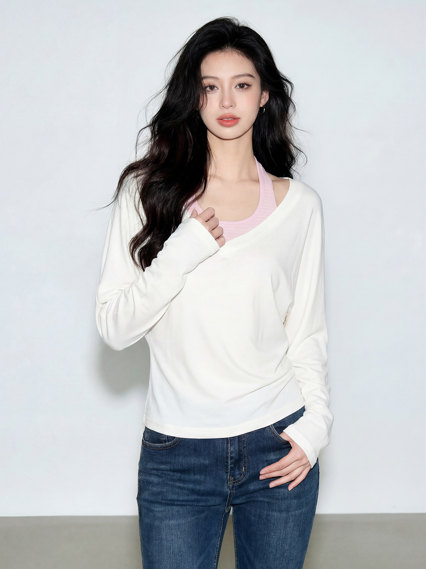 tongiiuu 니켈 스타일 달콤한 차가운 디자인 센스 V넥 비즈 행침 목 캐미솔 몸매 가꾸기 슬림해 보이는 맨위 여름