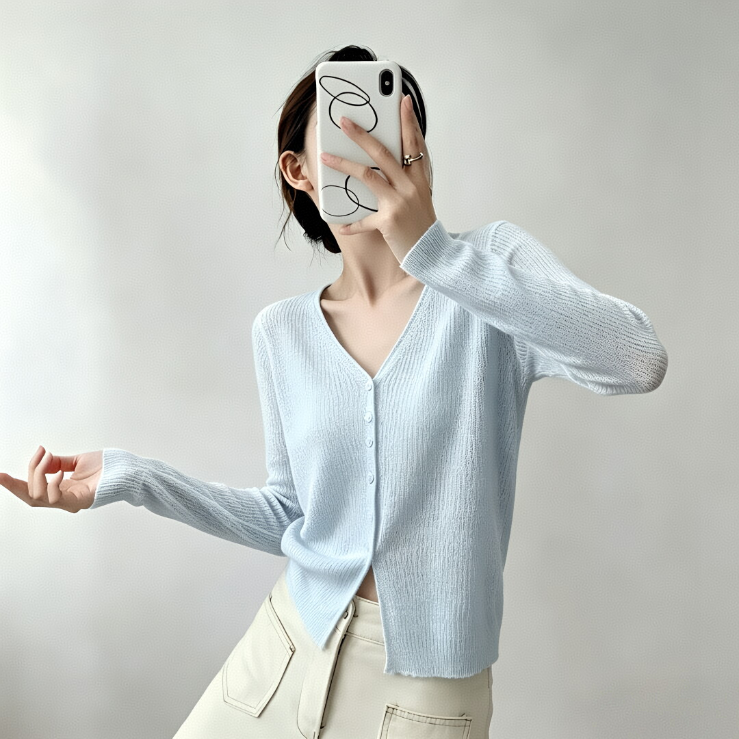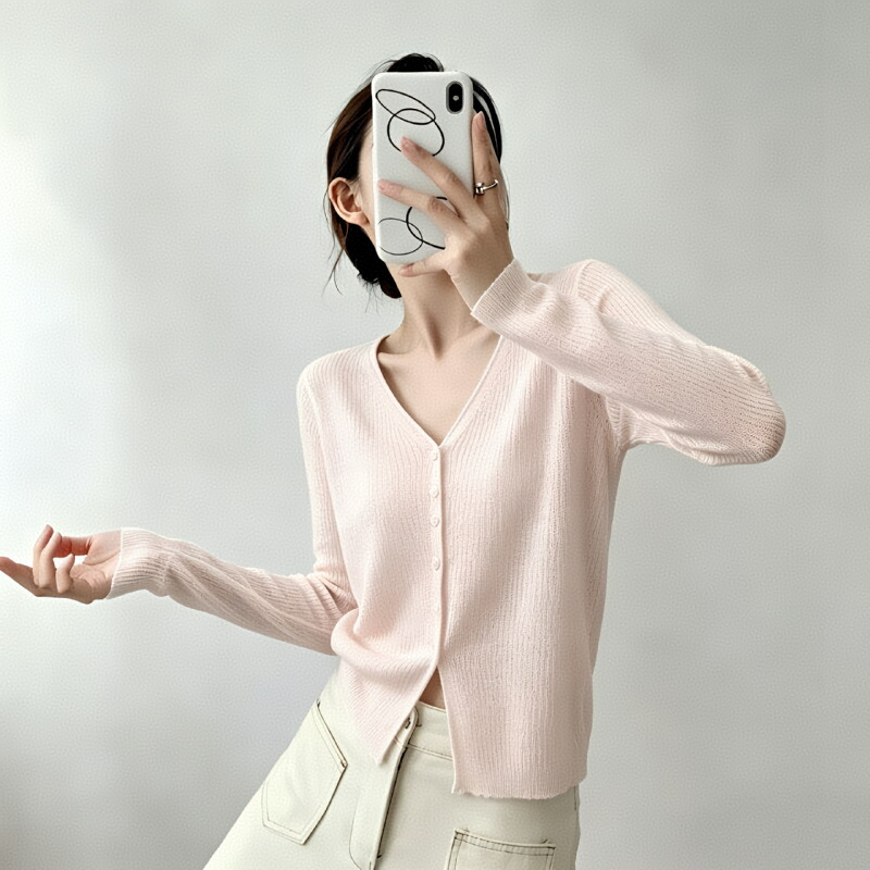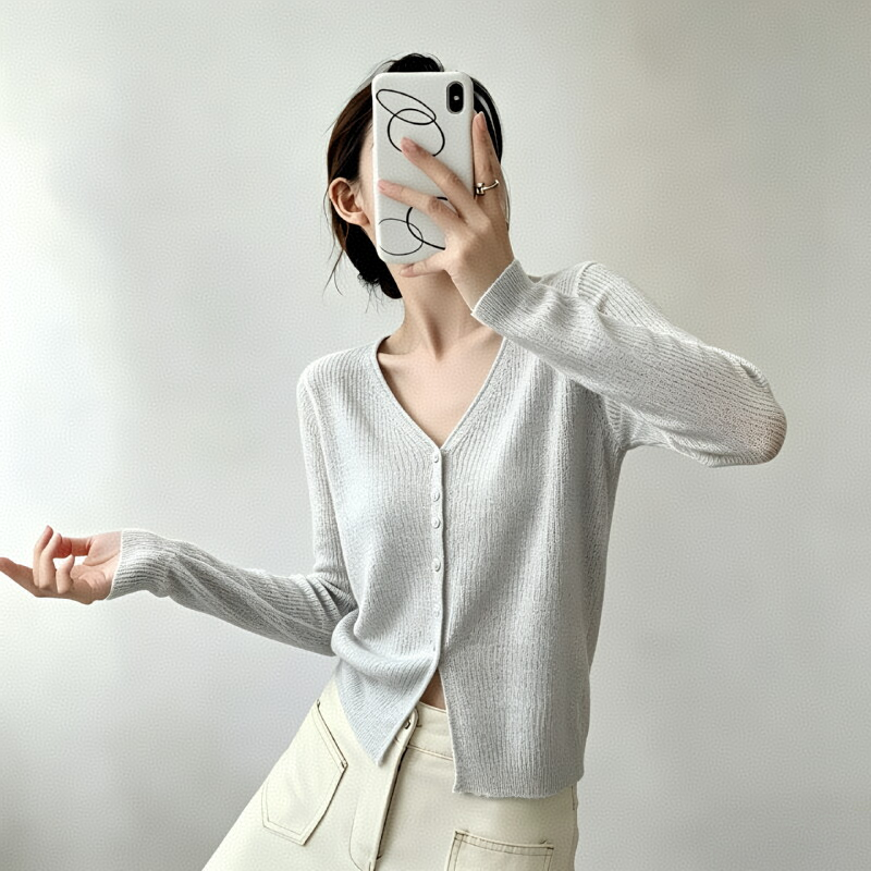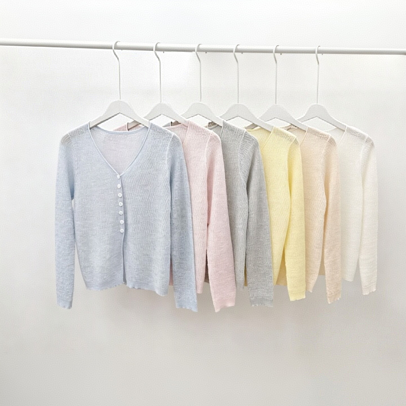 대나무 마디 마 얇고 가벼운 통기성 자외선 차단 맨위 여성 여름 프랑스식 외부 가져 가라. 고급 센스 니트 오픈 가디건