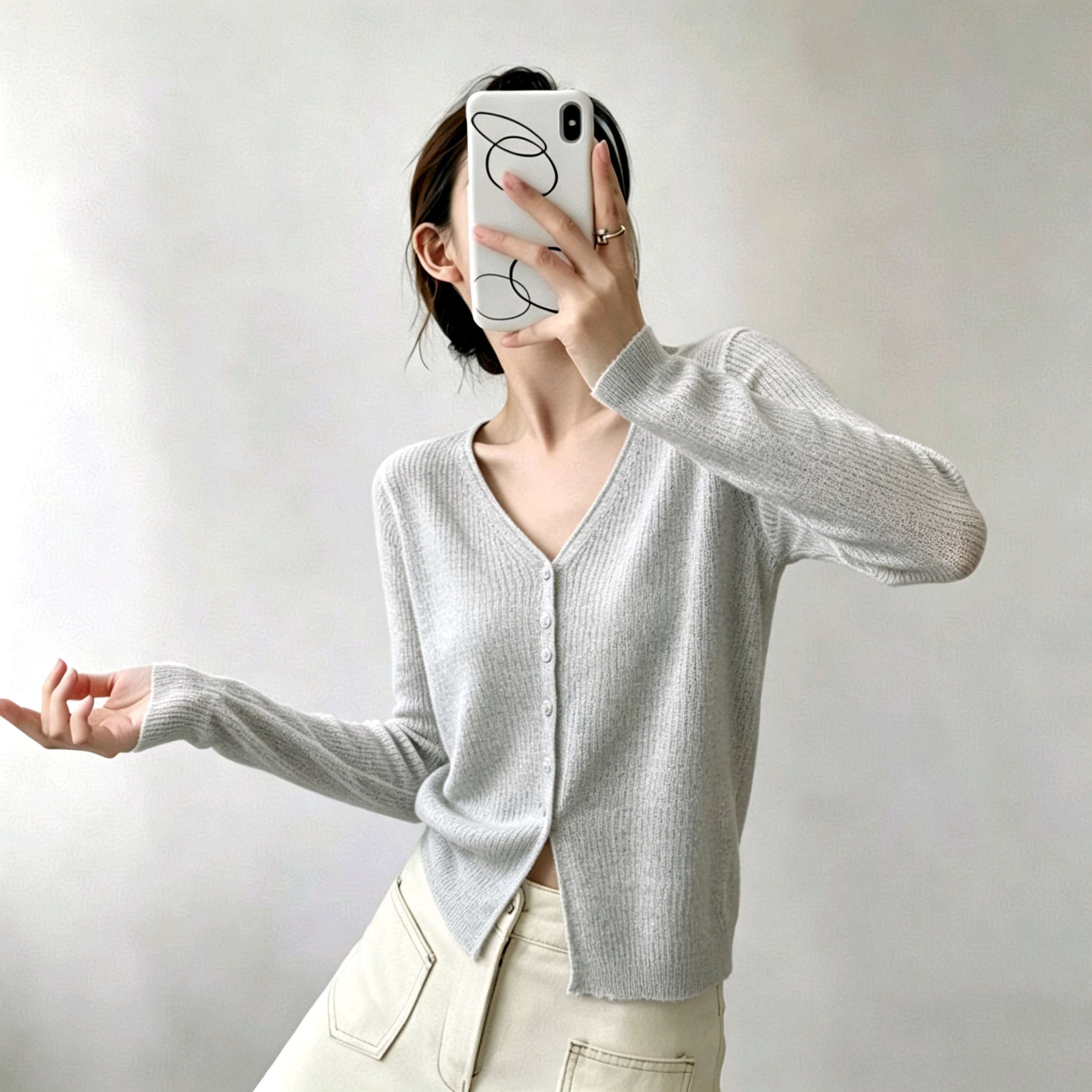정가 실사 홀로우 아웃 물결무늬 곡물 니트 반팔 맨위 불규칙 플리츠 반신 스커트 고급 회색 세트