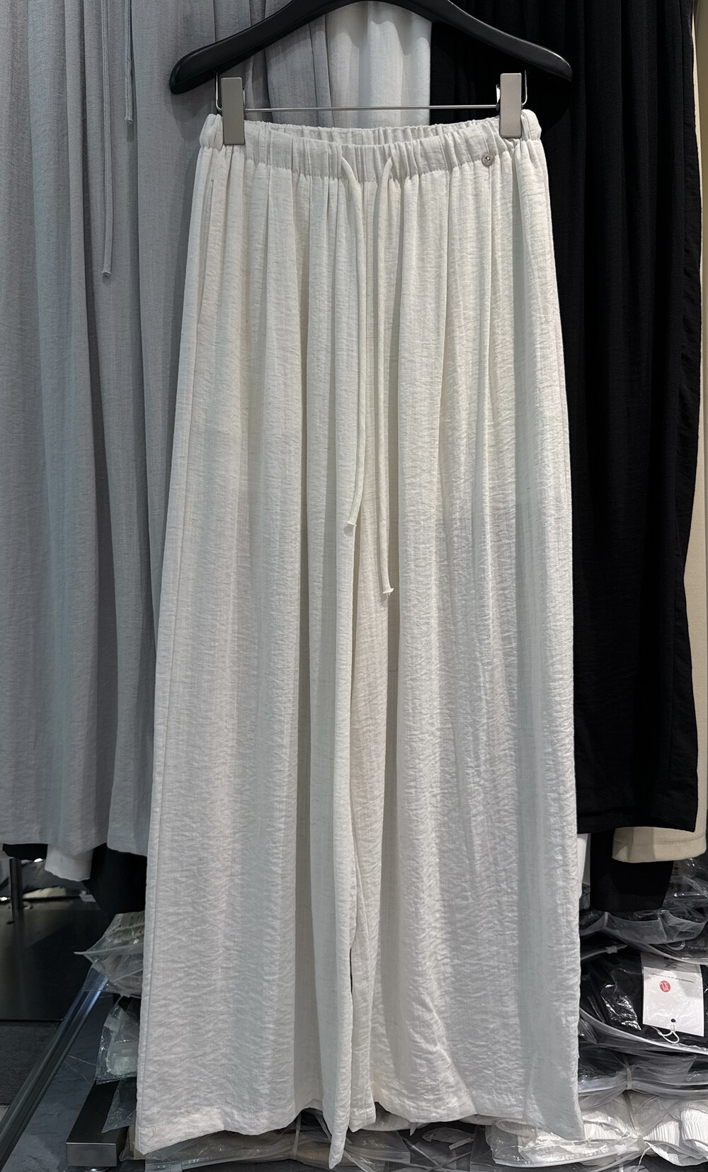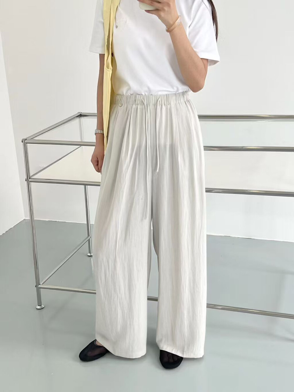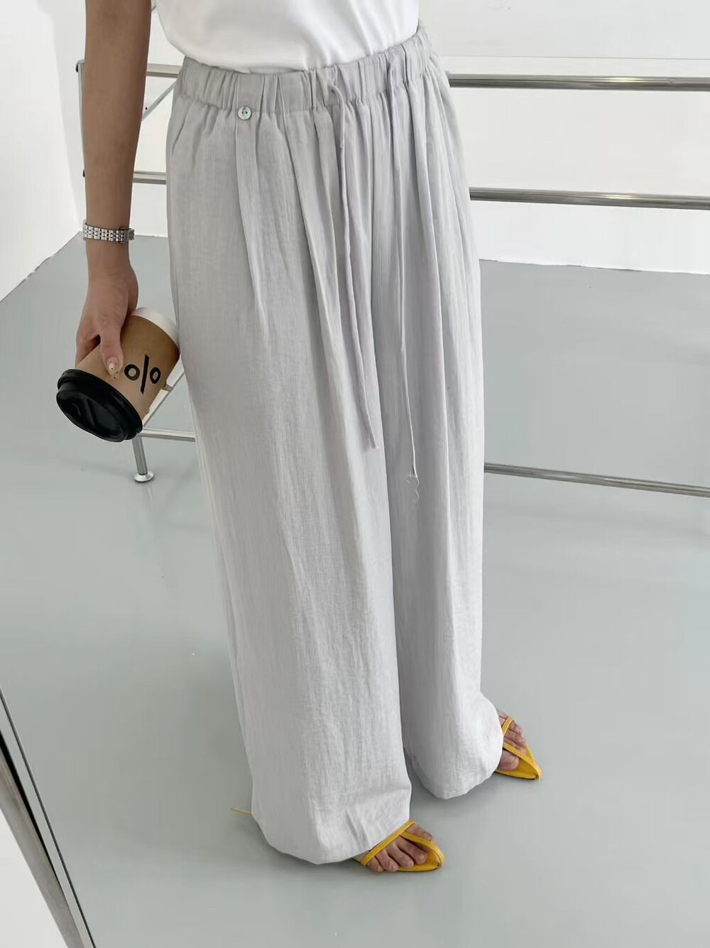 여름 켜기 새로운 미니멀리즘 단색 펌프 로프 하이웨이스트 루즈핏 와이드 레그 팬츠 캐주얼 바지