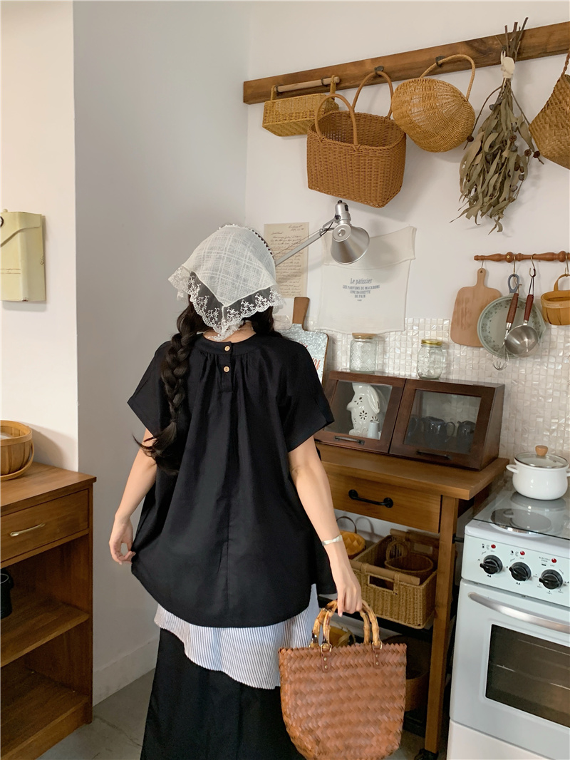 있음 선적 2026 chic 한국 스타일 불규칙 라운드 넥 셔츠
