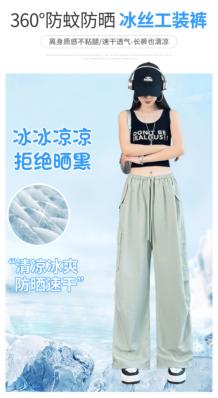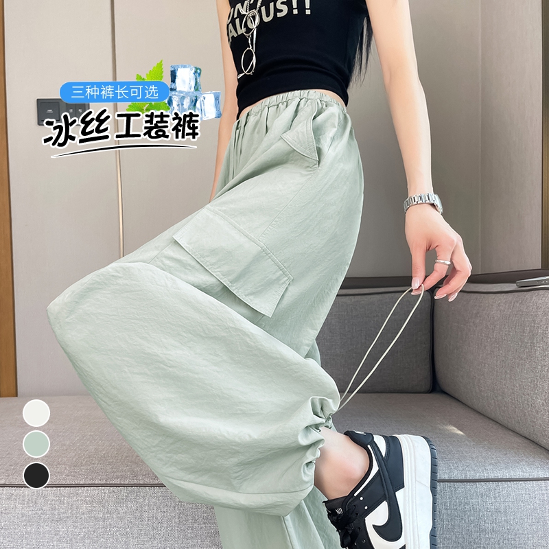 실사 2026 여름 얇은 스타일 유리 실 얼음 실크 치마바지 여성 하이웨이스트 자외선 차단 바지 바닥 청소 바지 여성