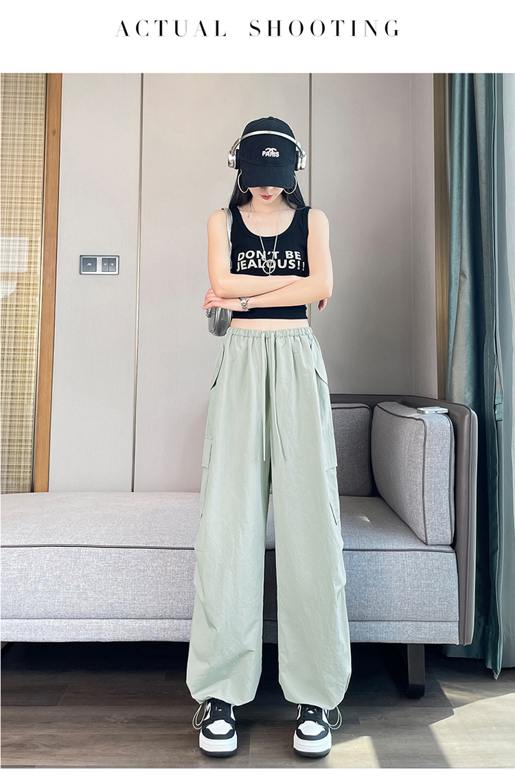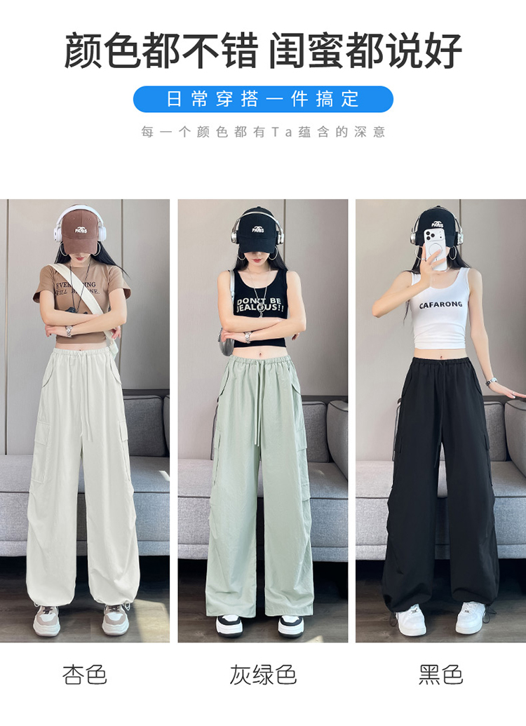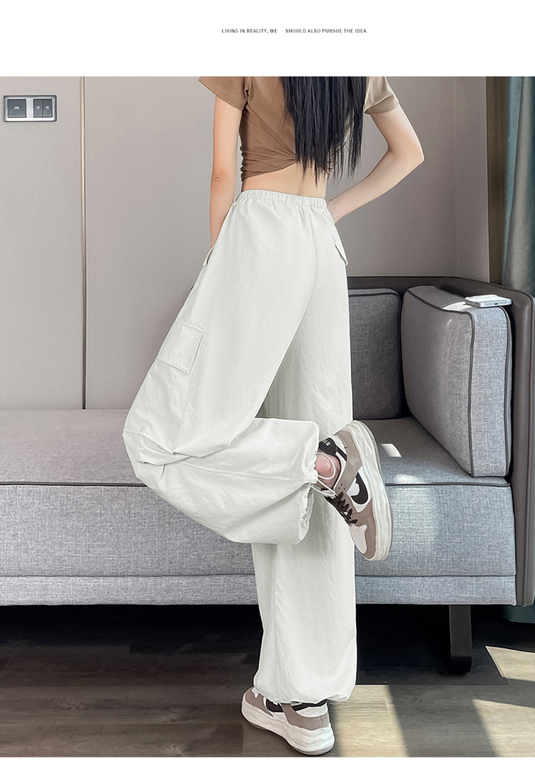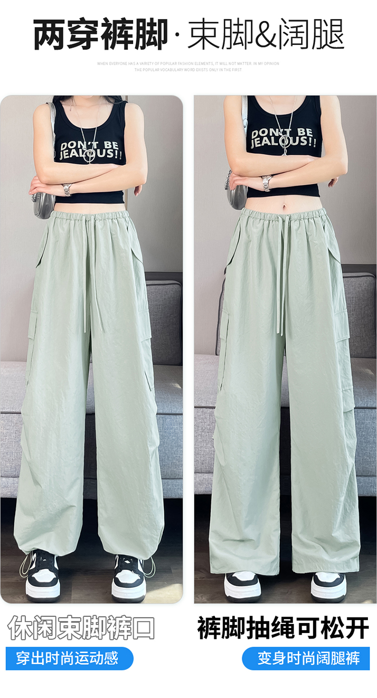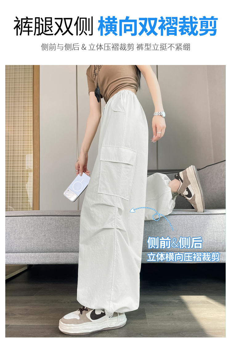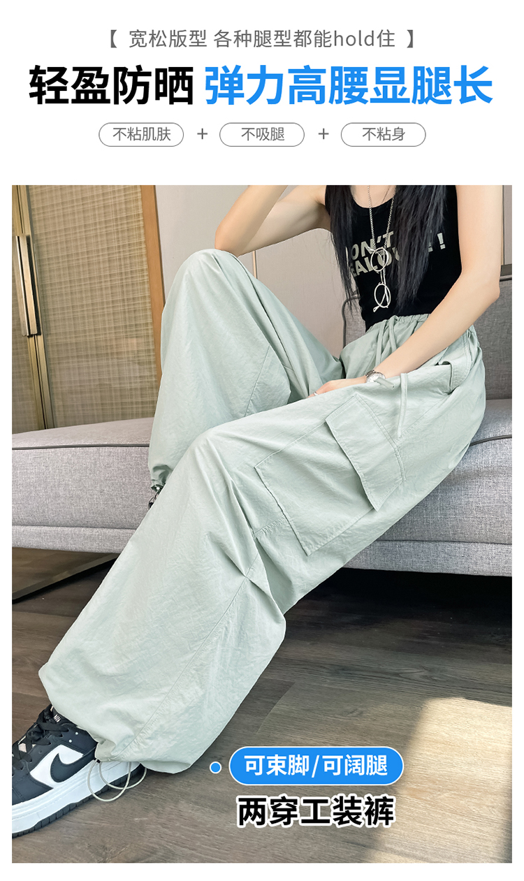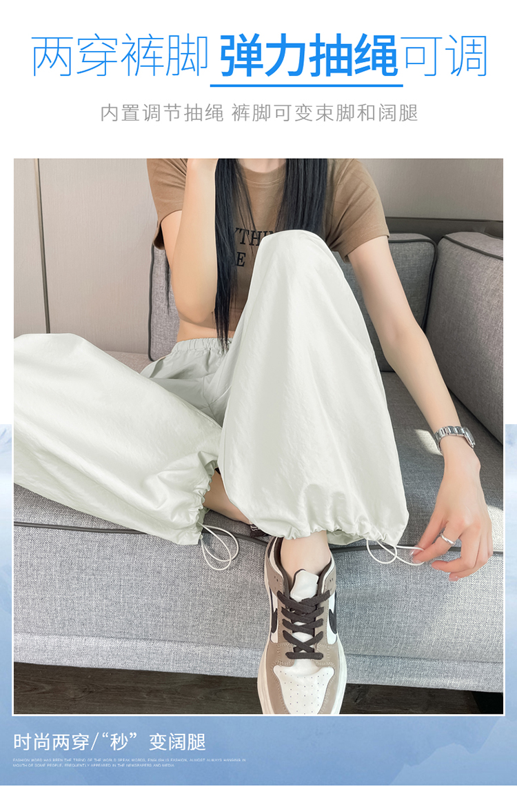 실사 2026 여름 새로운 속도 건조한 바지 워크웨어 팬츠 여성 얇은 스타일 하이웨이스트 조거 넓은 다리 둘 착용 할란 운동 바지