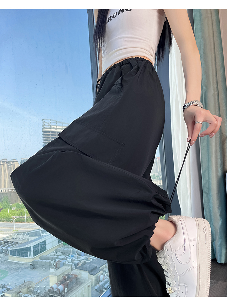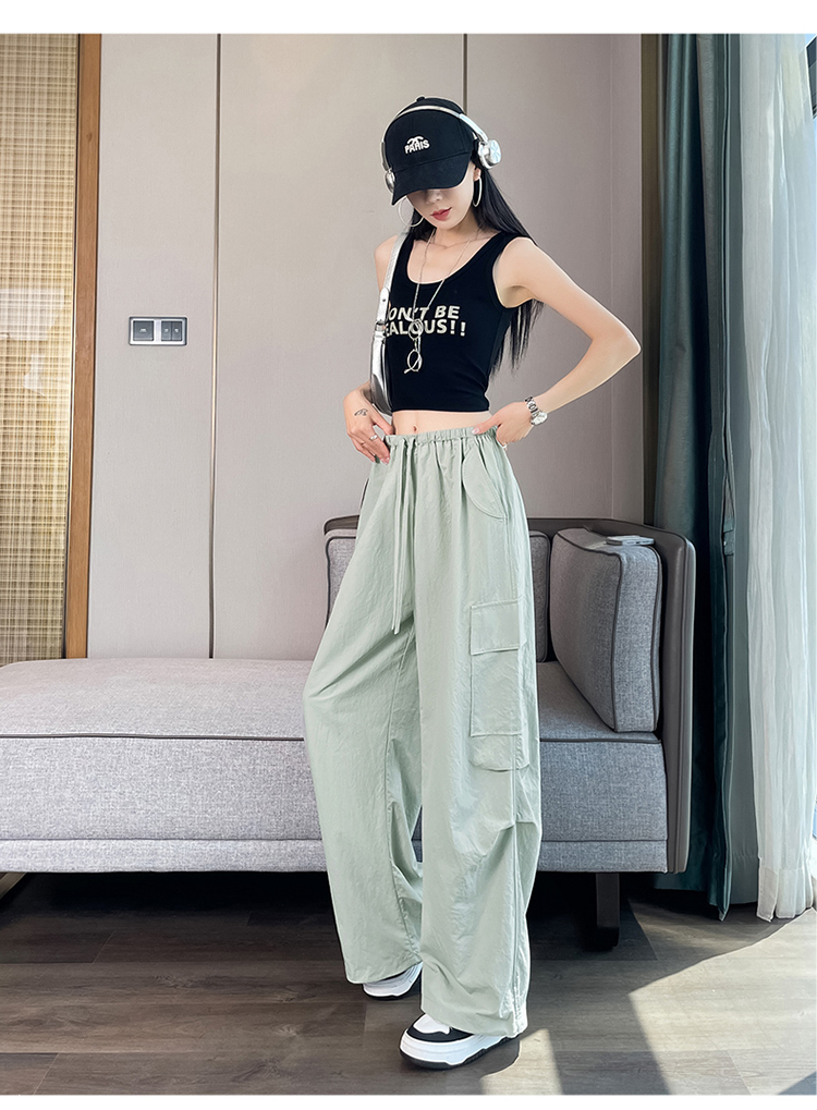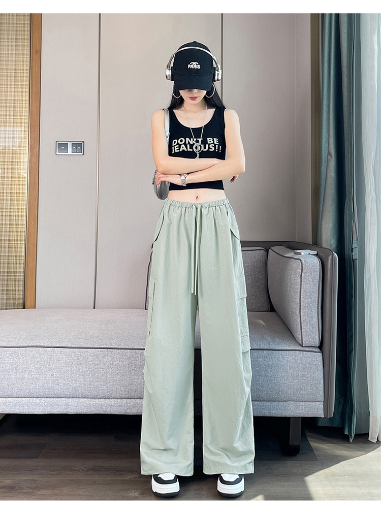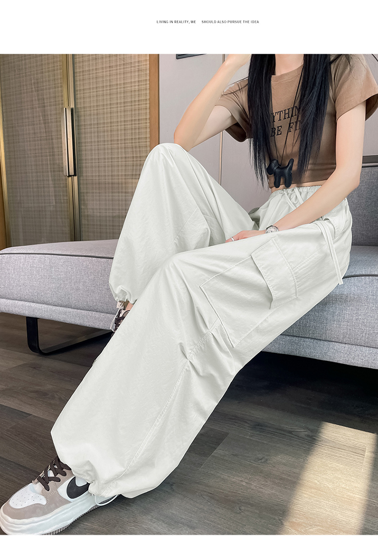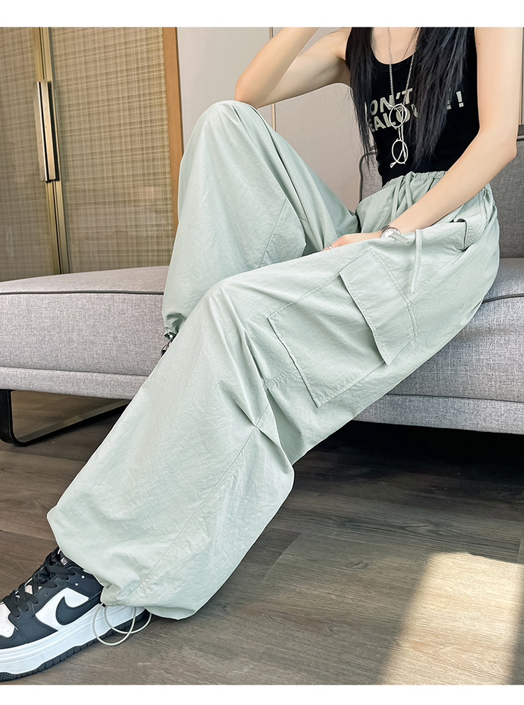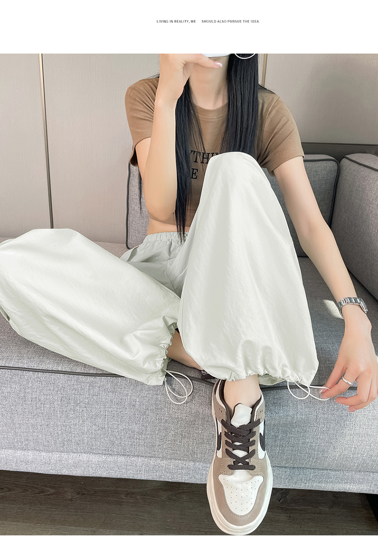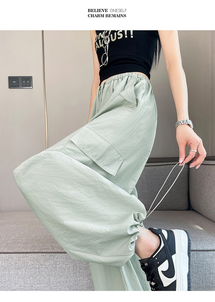 실사 2026 여름 새로운 속도 건조한 바지 워크웨어 팬츠 여성 얇은 스타일 하이웨이스트 조거 넓은 다리 둘 착용 할란 운동 바지