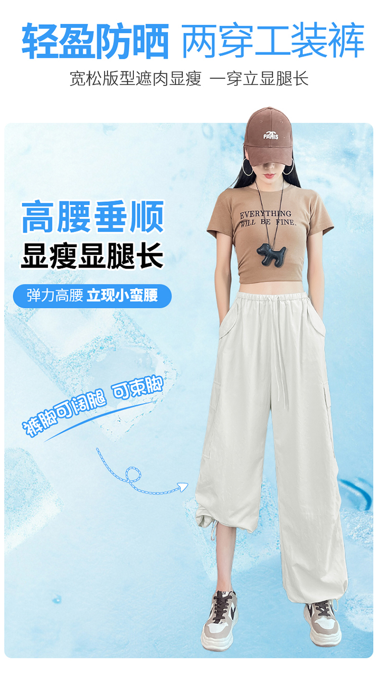 실사 2026 여름 새로운 얇은 스타일 속도 건조한 둘 착용 워크웨어 팬츠 하이웨이스트 자외선 차단 캐주얼 모통이 칼 바지 운동 바지 여성
