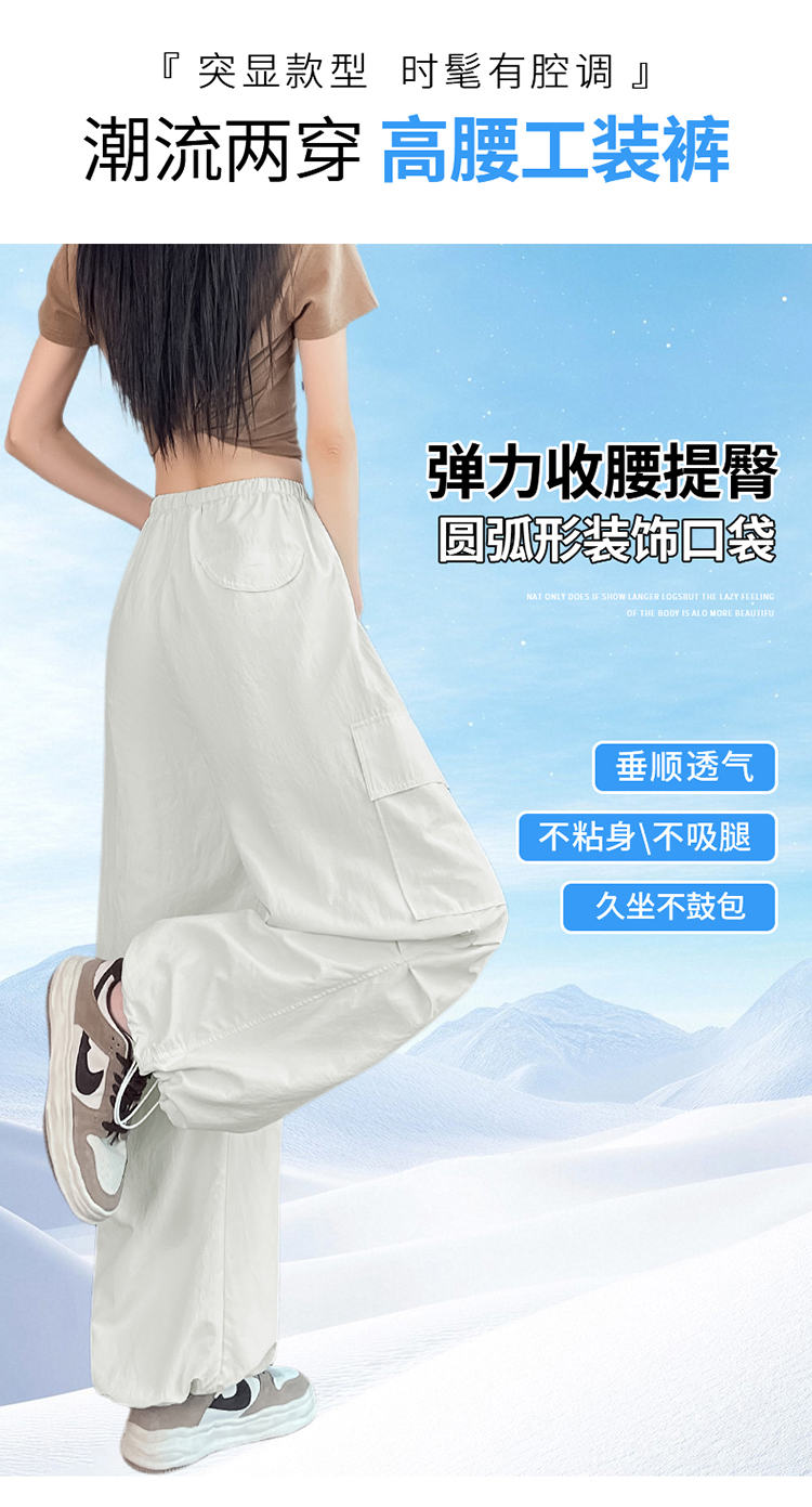 실사 2026 여름 새로운 속도 건조한 워크웨어 팬츠 조거 넓은 다리 둘 착용 하이웨이스트 운동 바지 여성