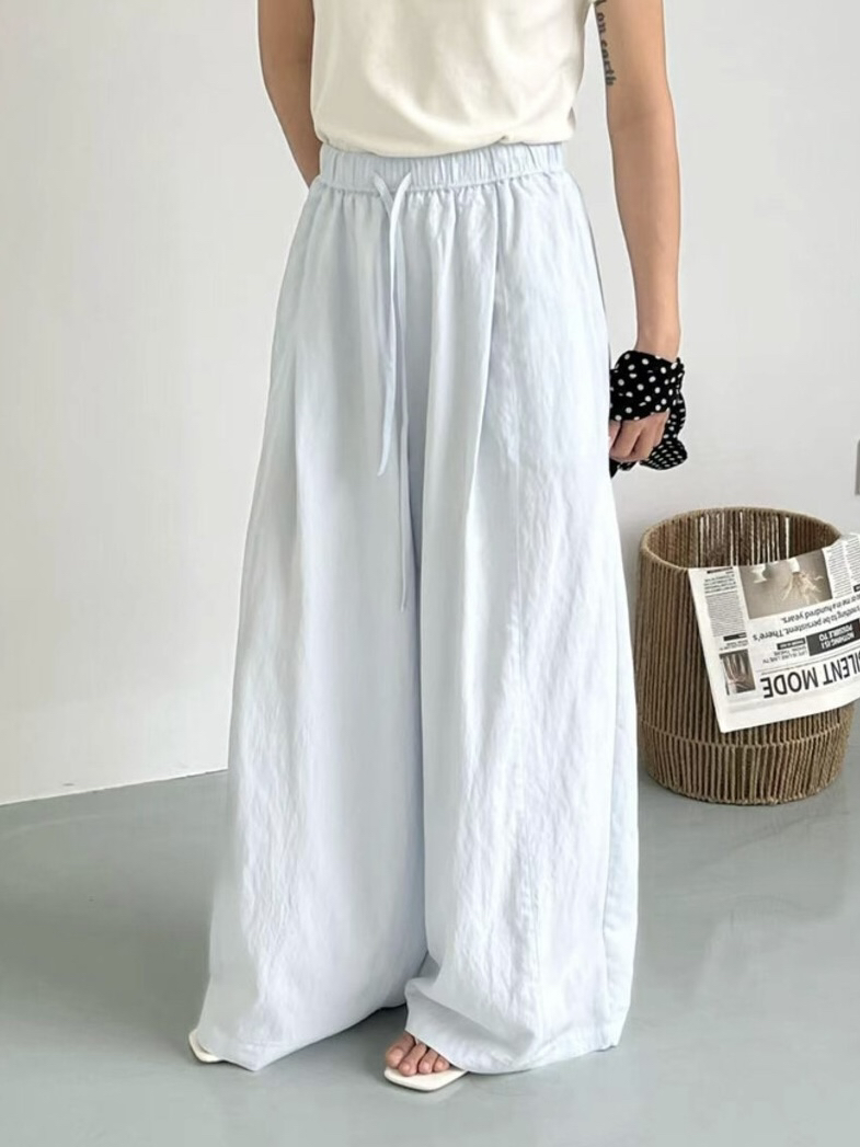 여름 켜기 새로운 미니멀리즘 단색 펌프 로프 하이웨이스트 루즈핏 와이드 레그 팬츠 캐주얼 바지