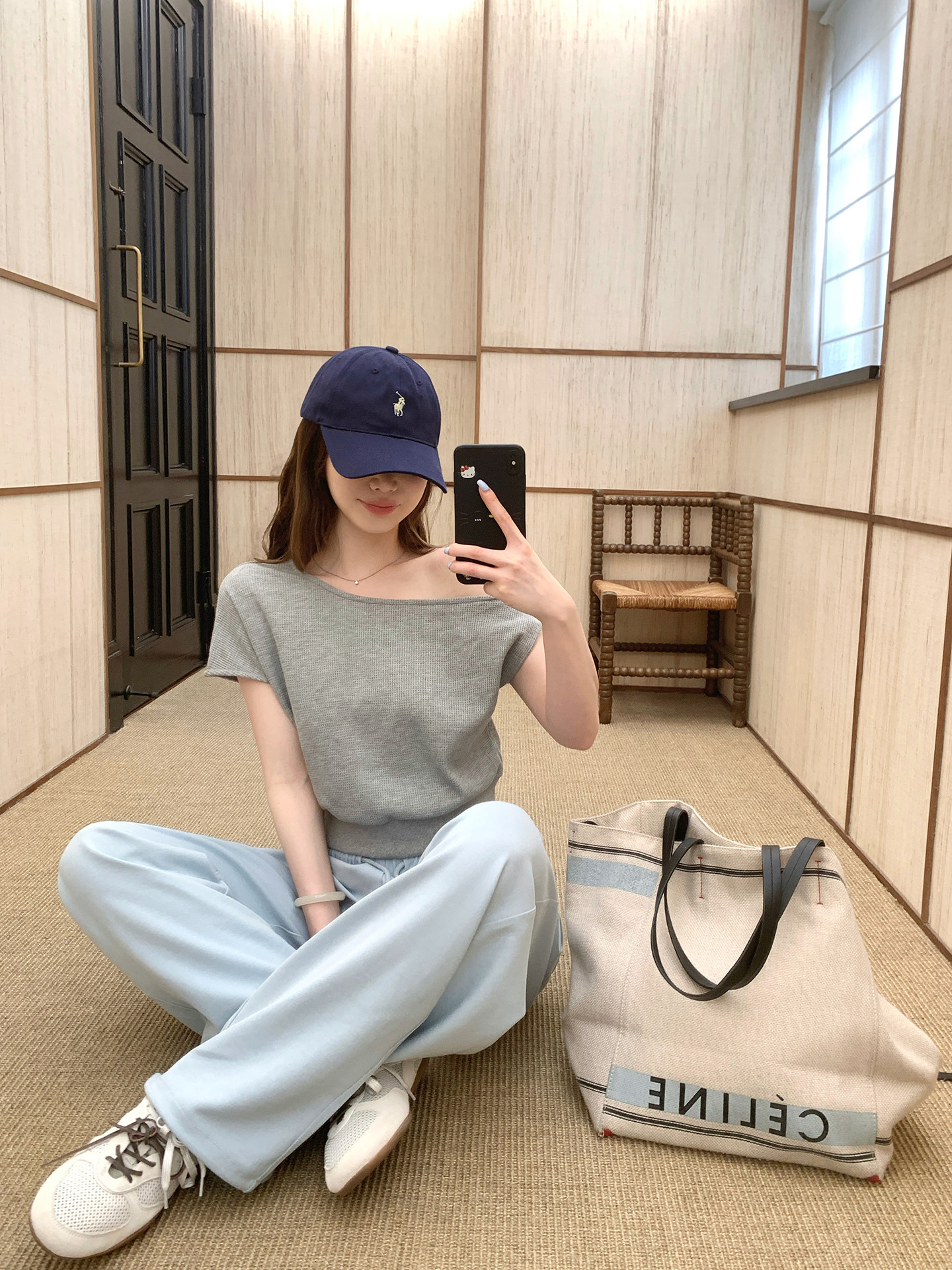 레트로 출퇴근 바람 반팔 티셔츠 여성 여름 몸매 가꾸기 V넥 디자인 센스 회색 풀오버 여름 니트 미니멀리즘 맨위 서비스