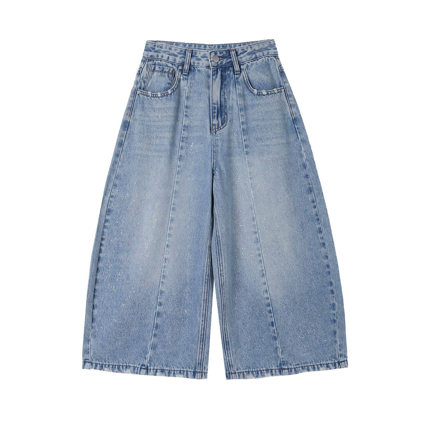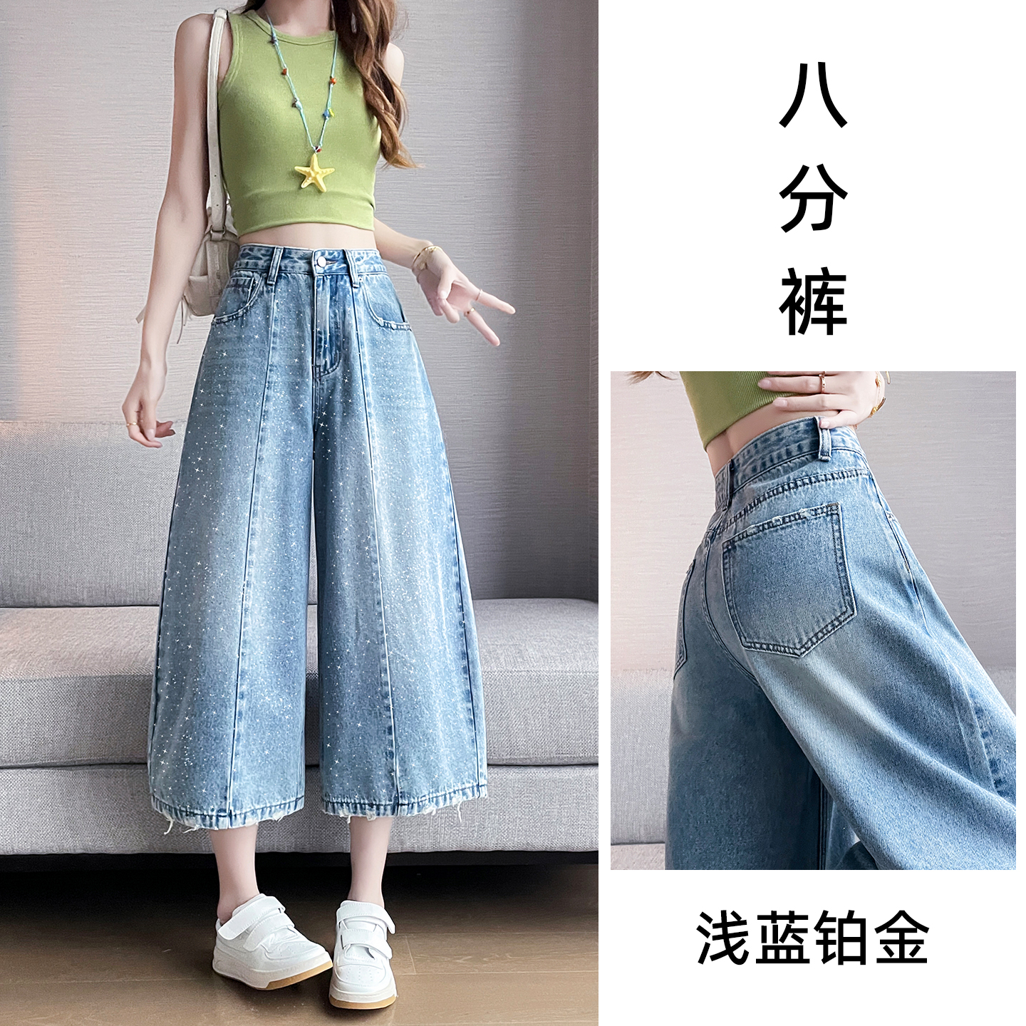 실사 핫픽스 하이웨이스트 모통이 칼 8 점 청바지 여성 2026 여름 새로운 루즈핏 슬림해 보이는 작은 키 와이드 레그 팬츠