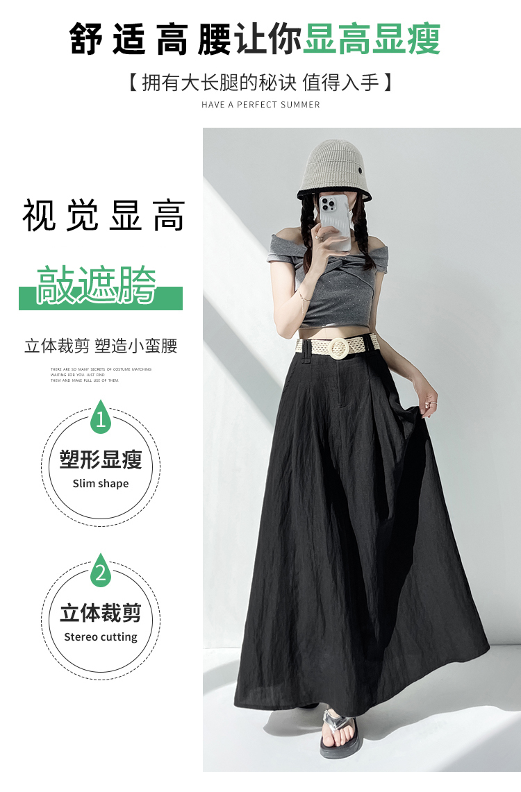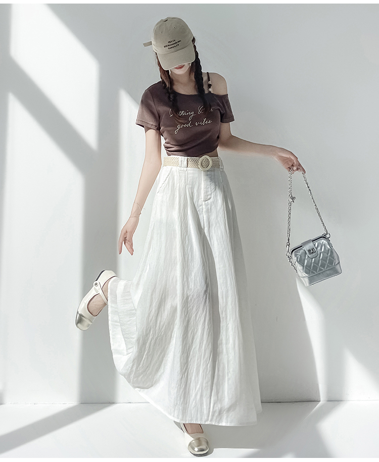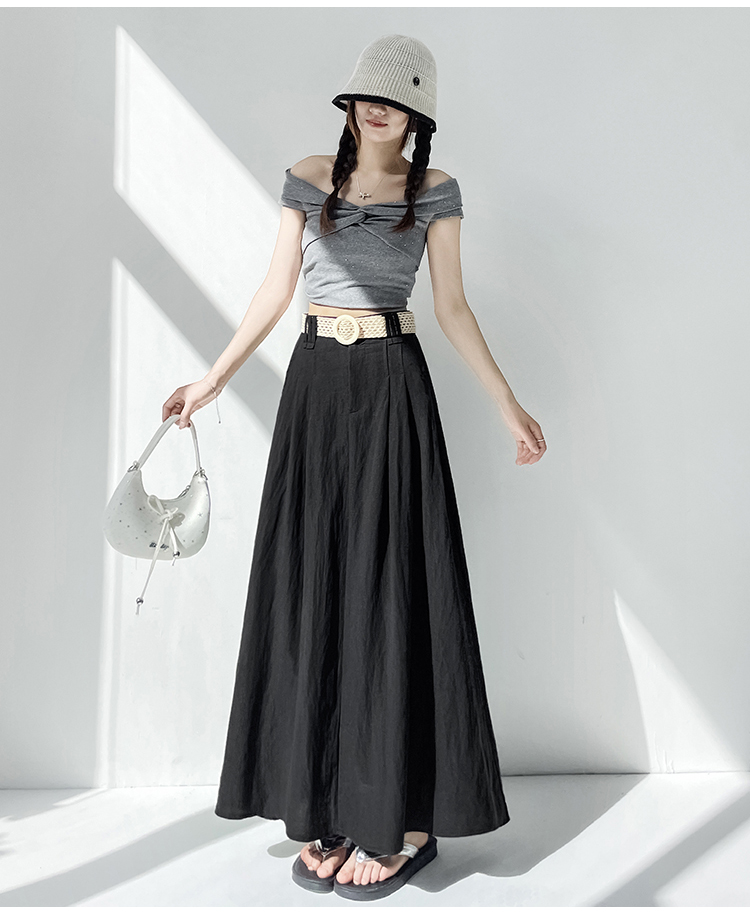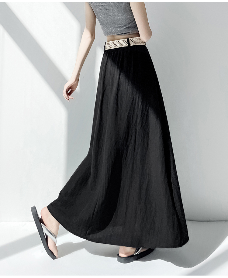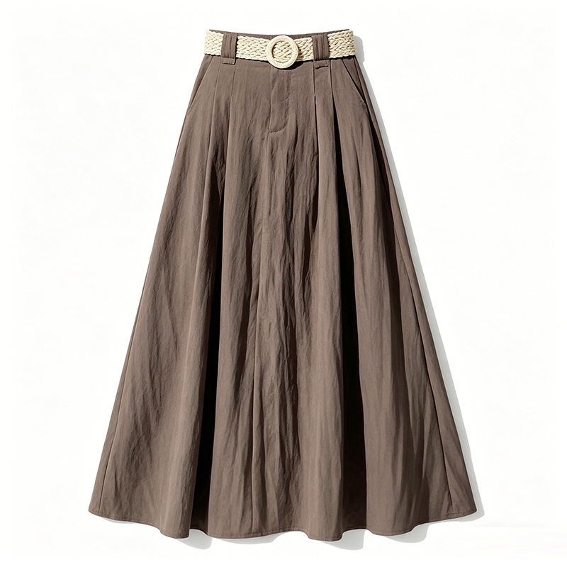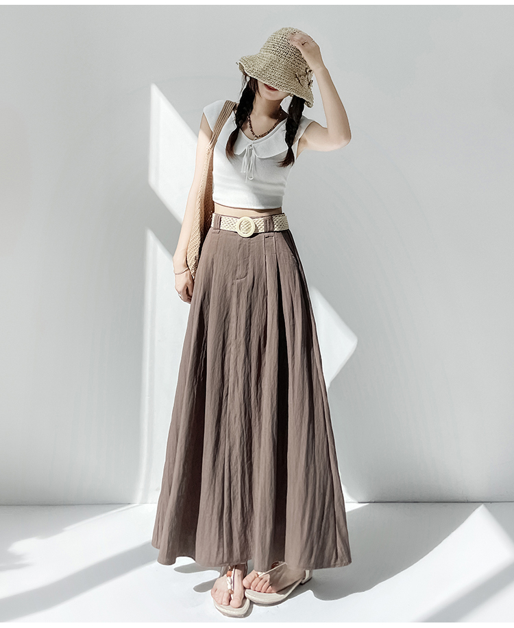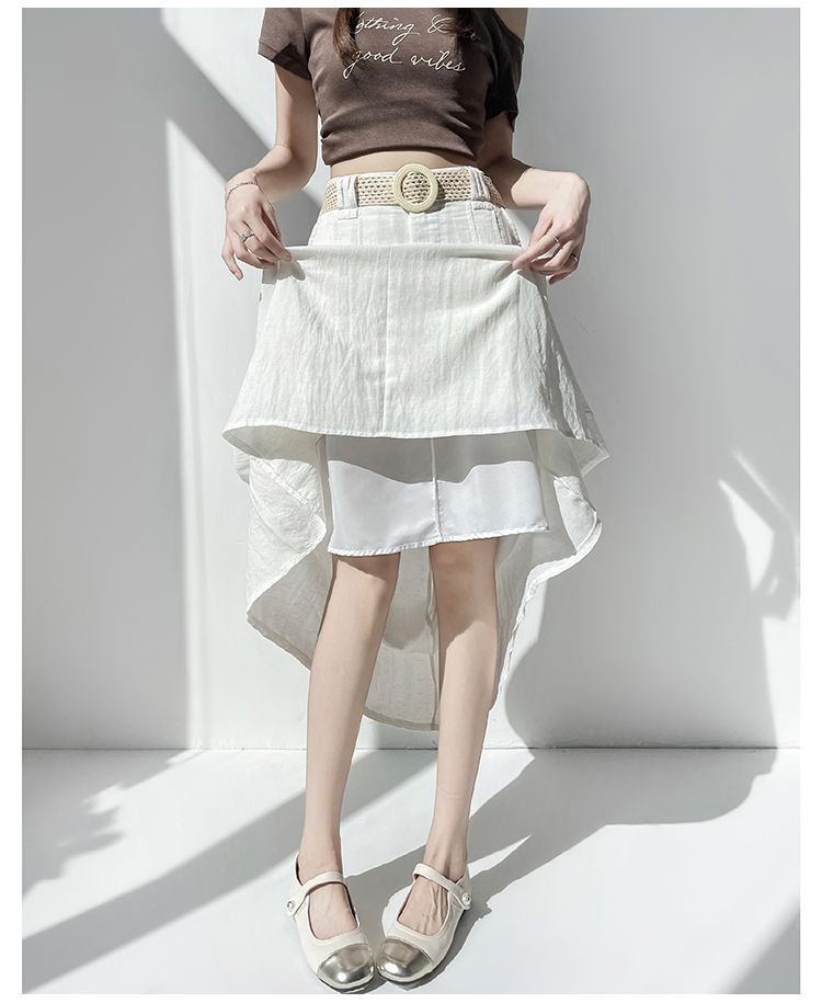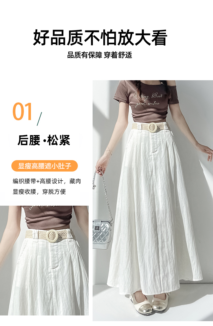 실사 2026 여름 한 부서 표지 넓적 다리 슬림해 보이는 짜임 벨트 디자인 중간 길이 면 린넨 도루 센스 한 마디 반신 스커트 우산 치마