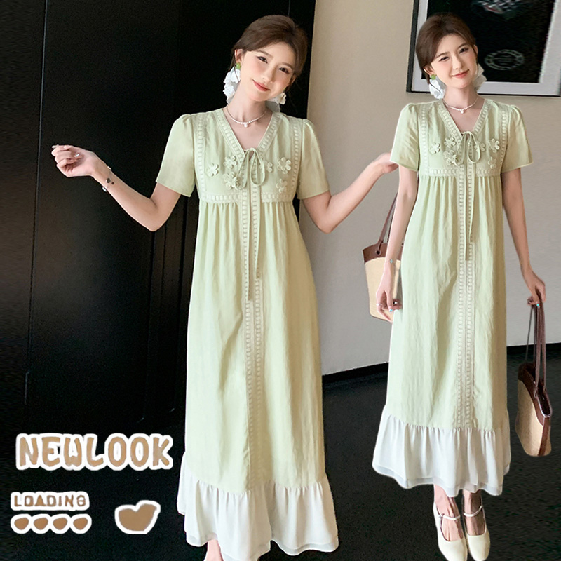 실사 임산부 여름 새로운 자수 드레스 트렌디 엄마 고급 센스 요정 연령 감소 품격 슬림해 보이는 롱 스커트