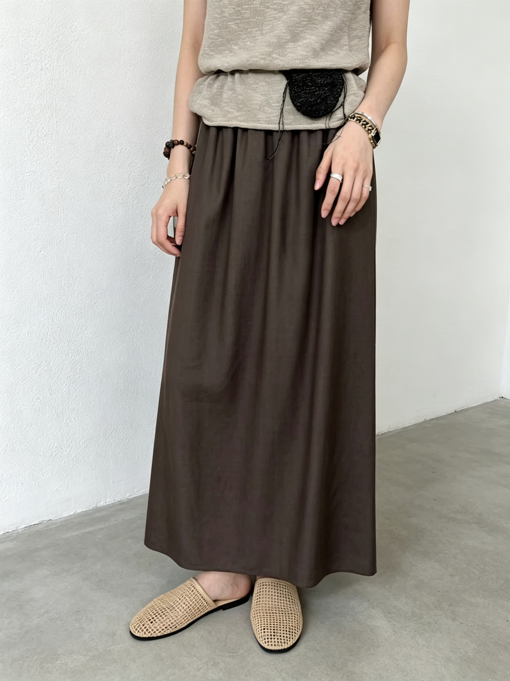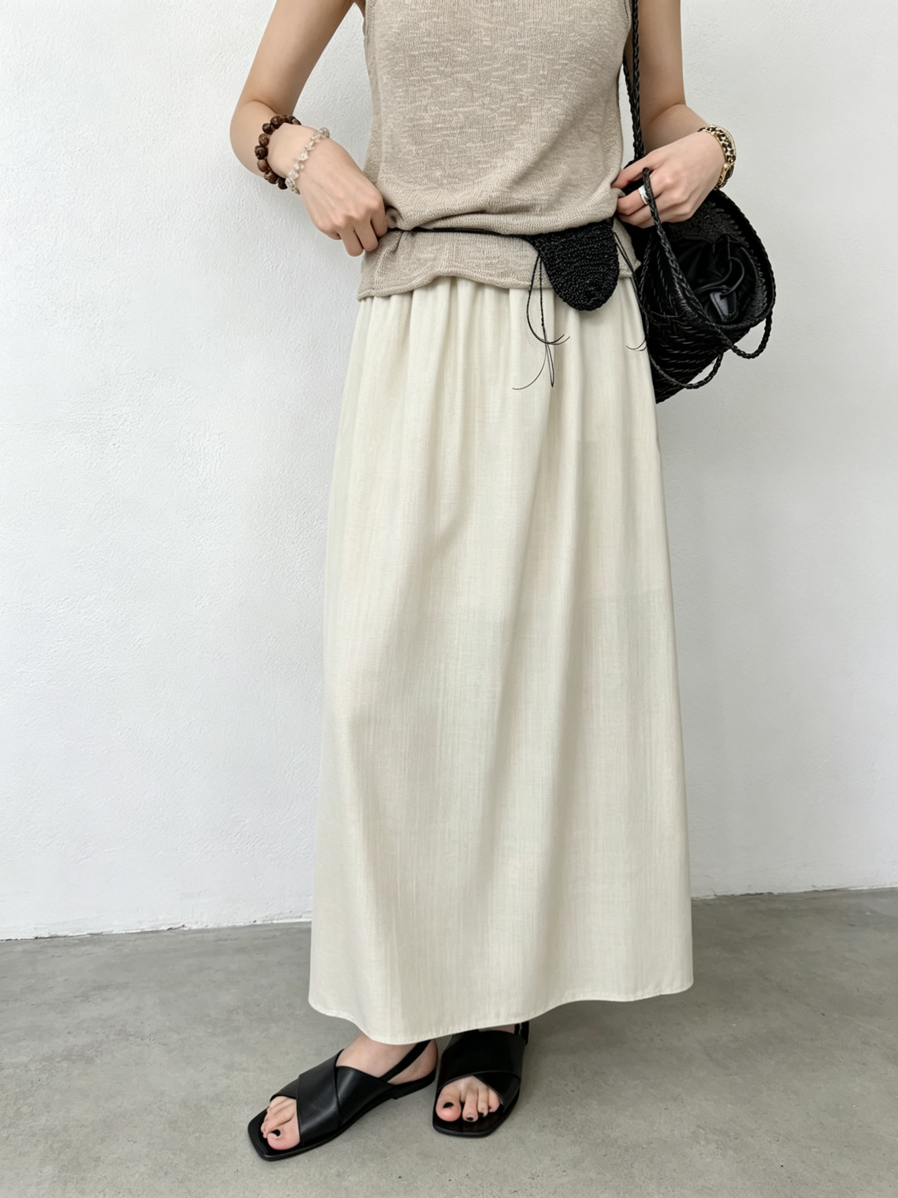여름 켜기 새로운 밴딩 뒤로 껍질 버클 단색 다용도 반신 스커트