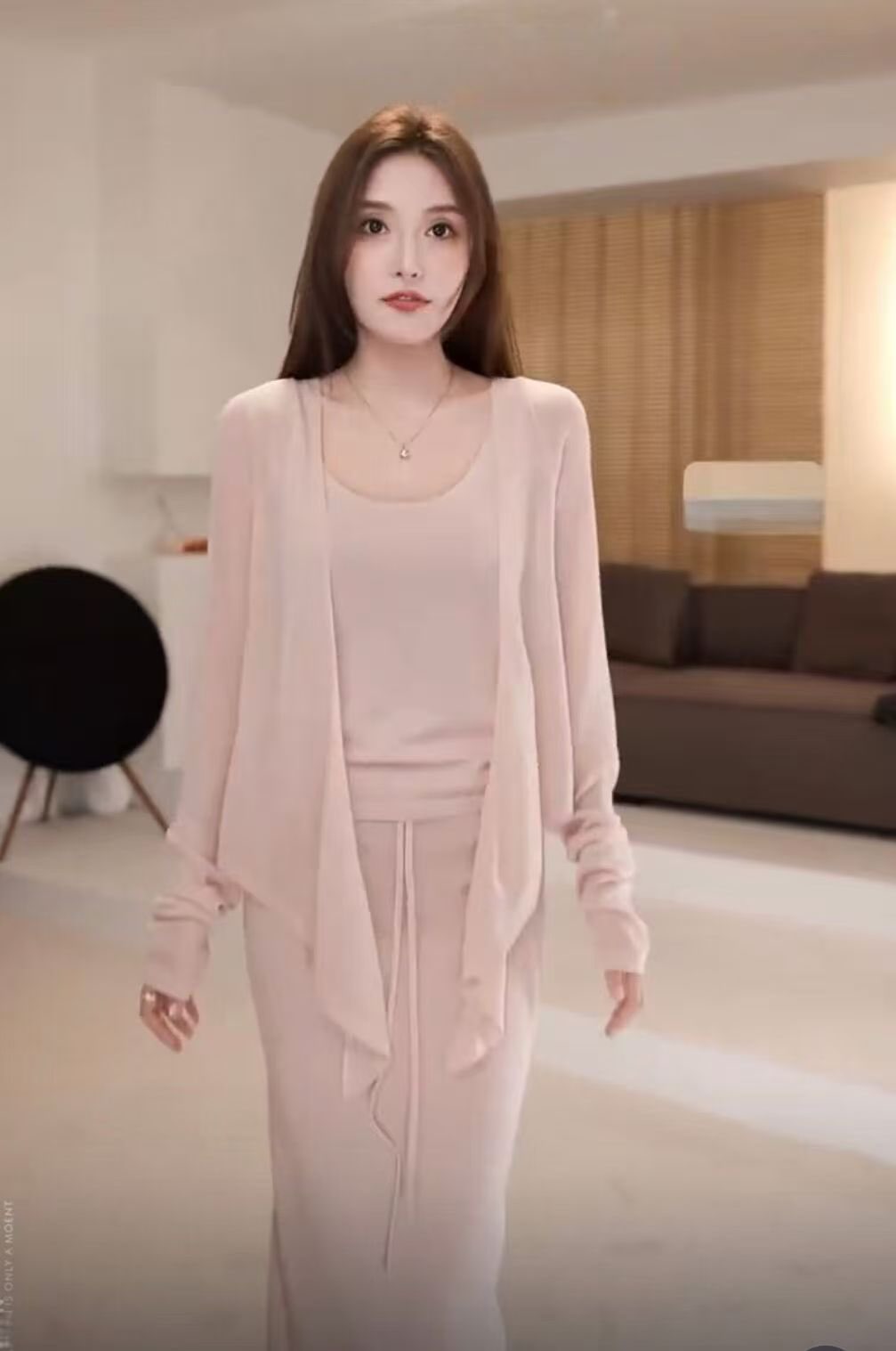 핑크색 슬립 긴팔 오픈 가디건 이른 봄 아름다운 세트 여성 2026 한 마디 반신 스커트 3종 세트