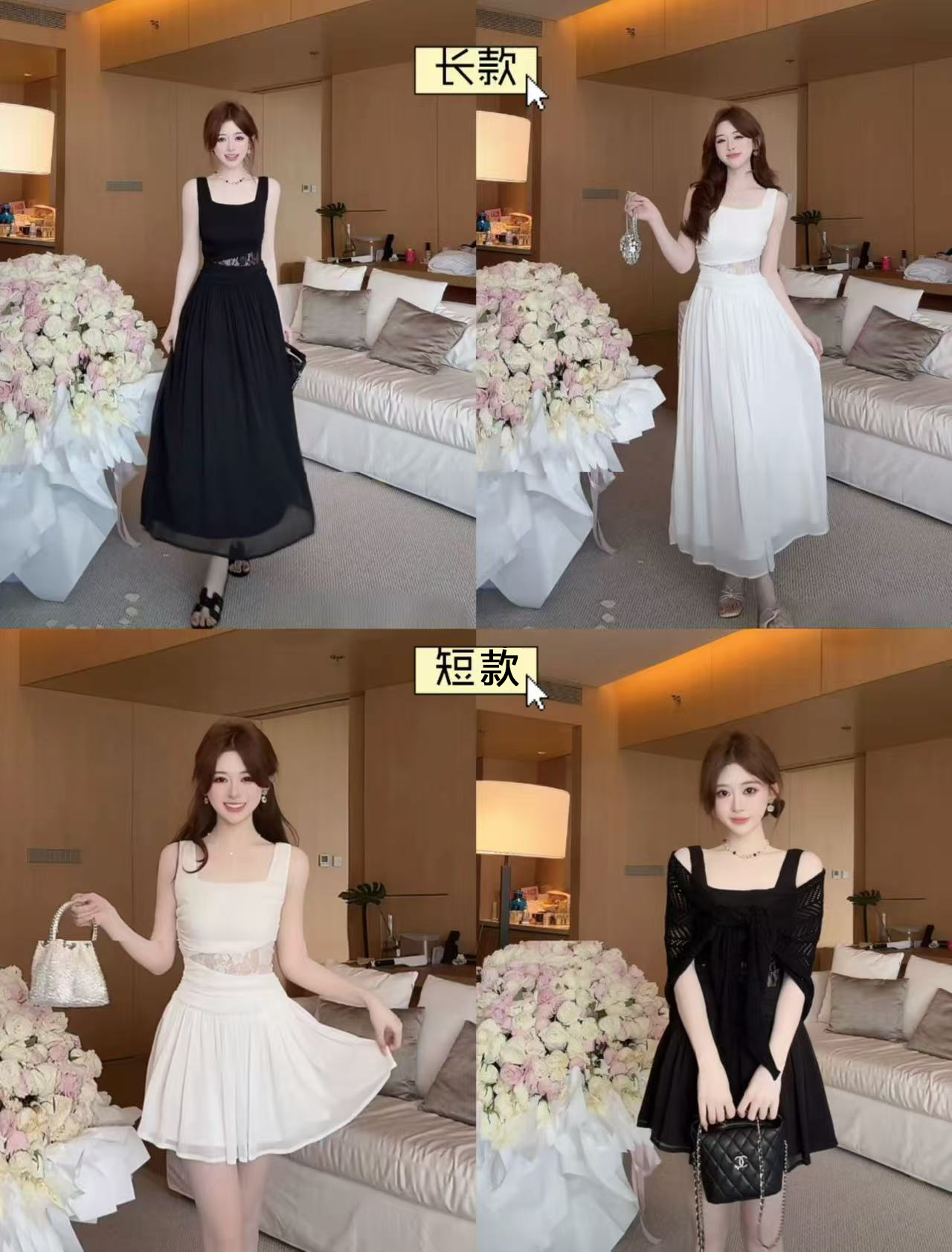 sza 꽃 객실 주리예 줄려엽 여름 새로운 부드러운 품격 홀로우 아웃 레이스 민소매 쇼트 스타일 드레스