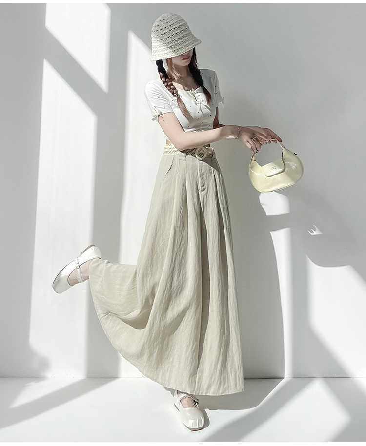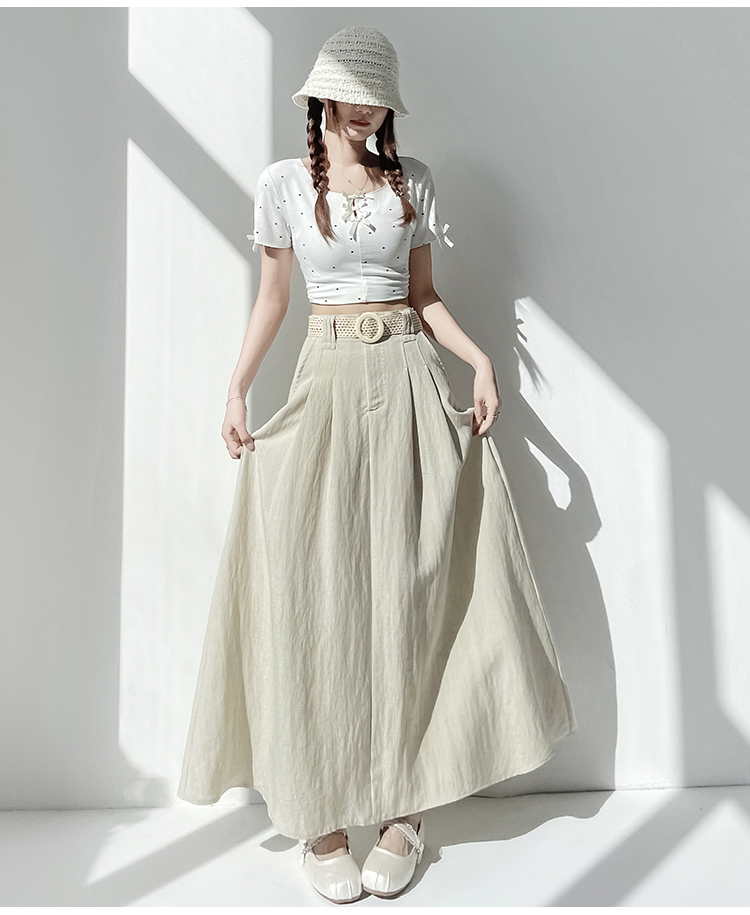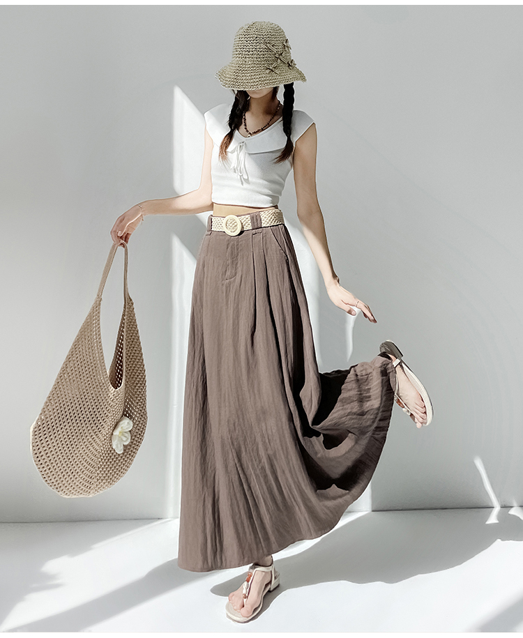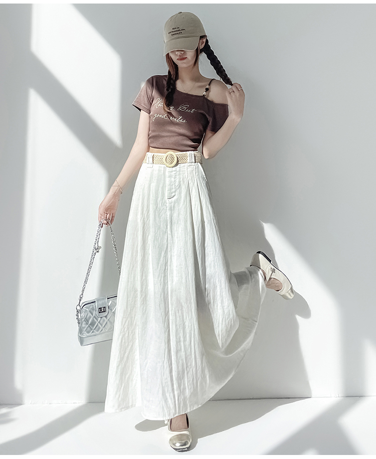 실사 2026 여름 한 부서 표지 넓적 다리 슬림해 보이는 짜임 벨트 디자인 중간 길이 면 린넨 도루 센스 한 마디 반신 스커트 우산 치마