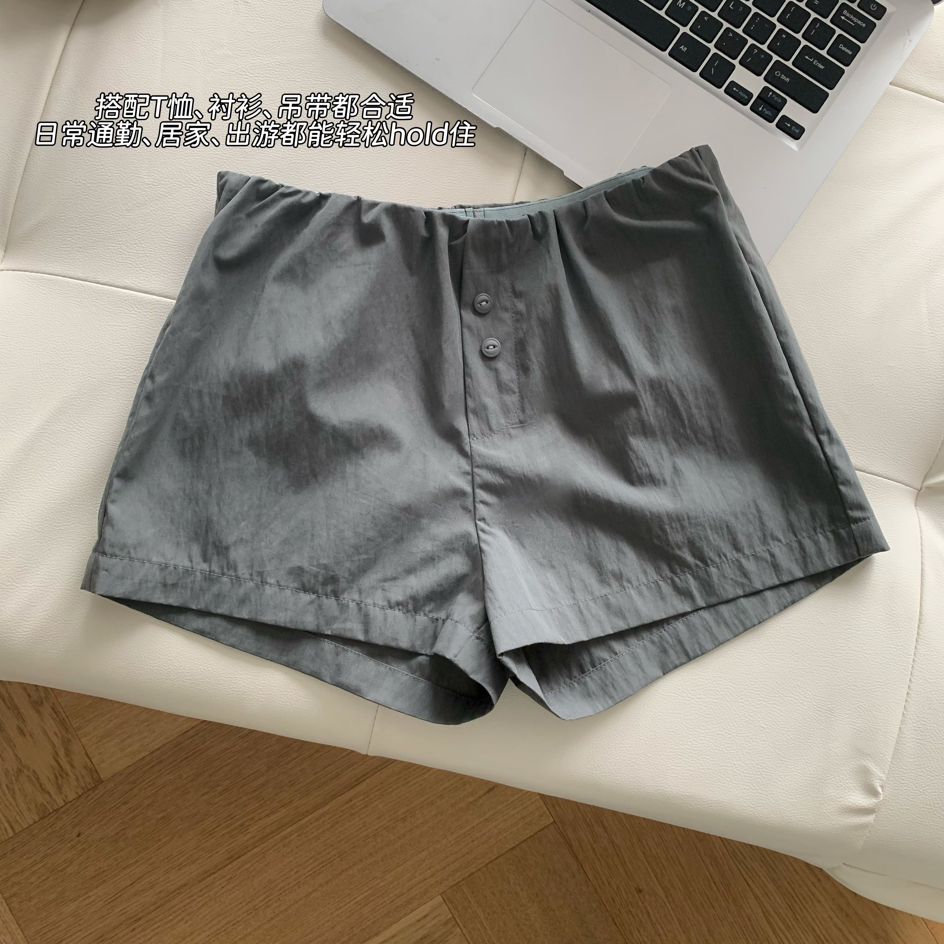 titi 작은 자매 기타 소녀 캐주얼 바지 여성 여름 다용도 루즈핏 슬림해 보이는 중간 허리 넓은 다리가 짧다. 바지 얇은