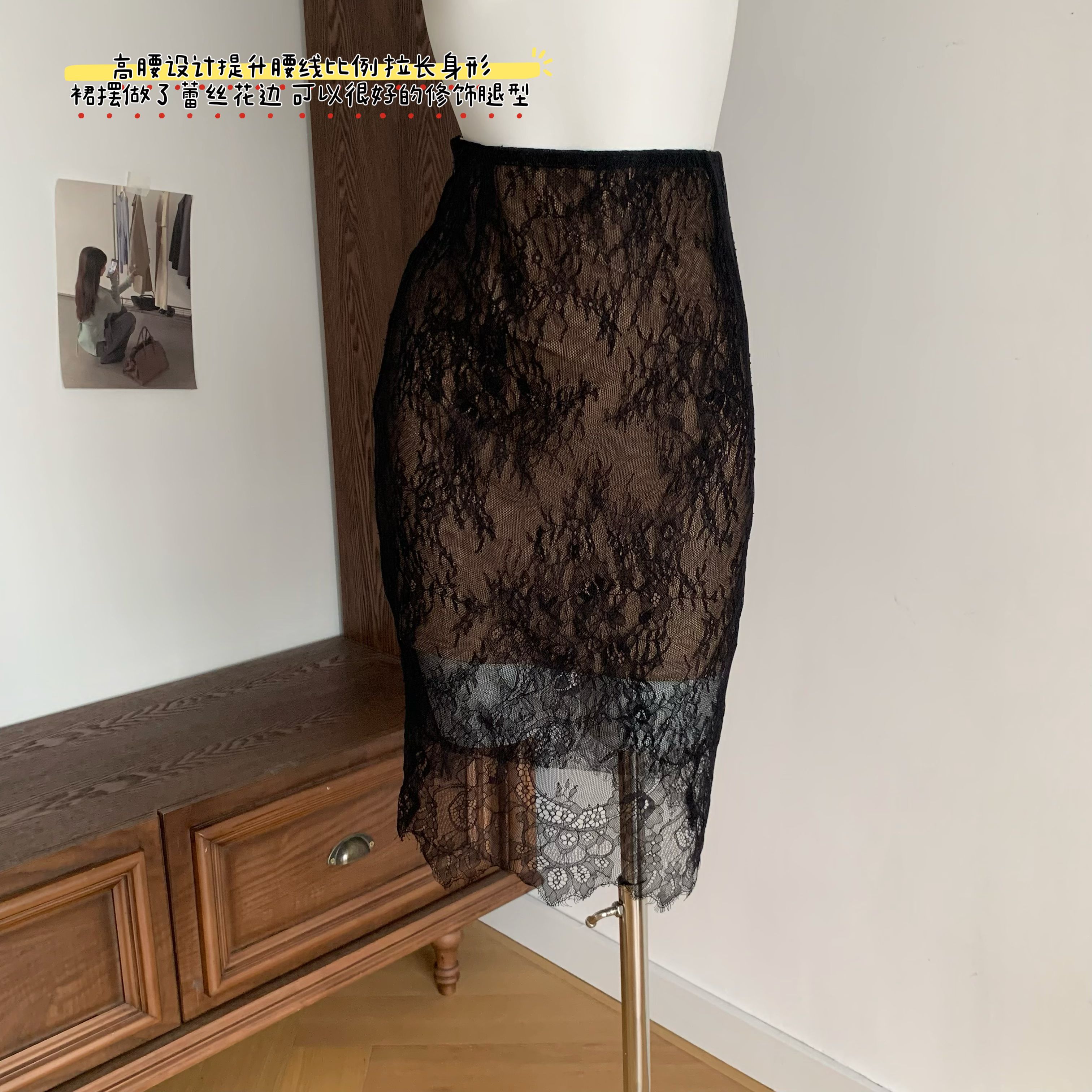 chill 챠오어 낭만주의 바로크 무거운 작업 검정색 레이스 섹시함 반 스커트 순수한 욕망 다용도 하이웨이스트 미니 스커트