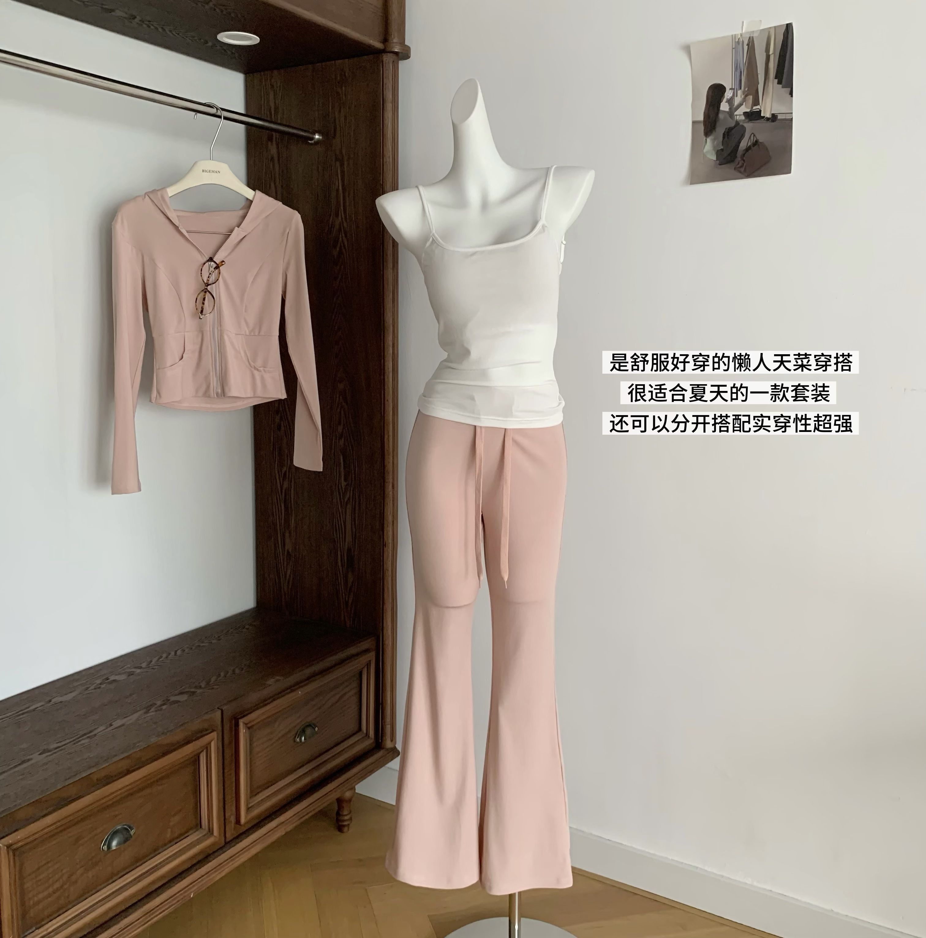 laareetoo 니트 오픈 가디건 여성 슬림해 보이는 에어컨 셔츠 긴팔 자외선 차단 의류 캐미솔 여름 투피스 세트
