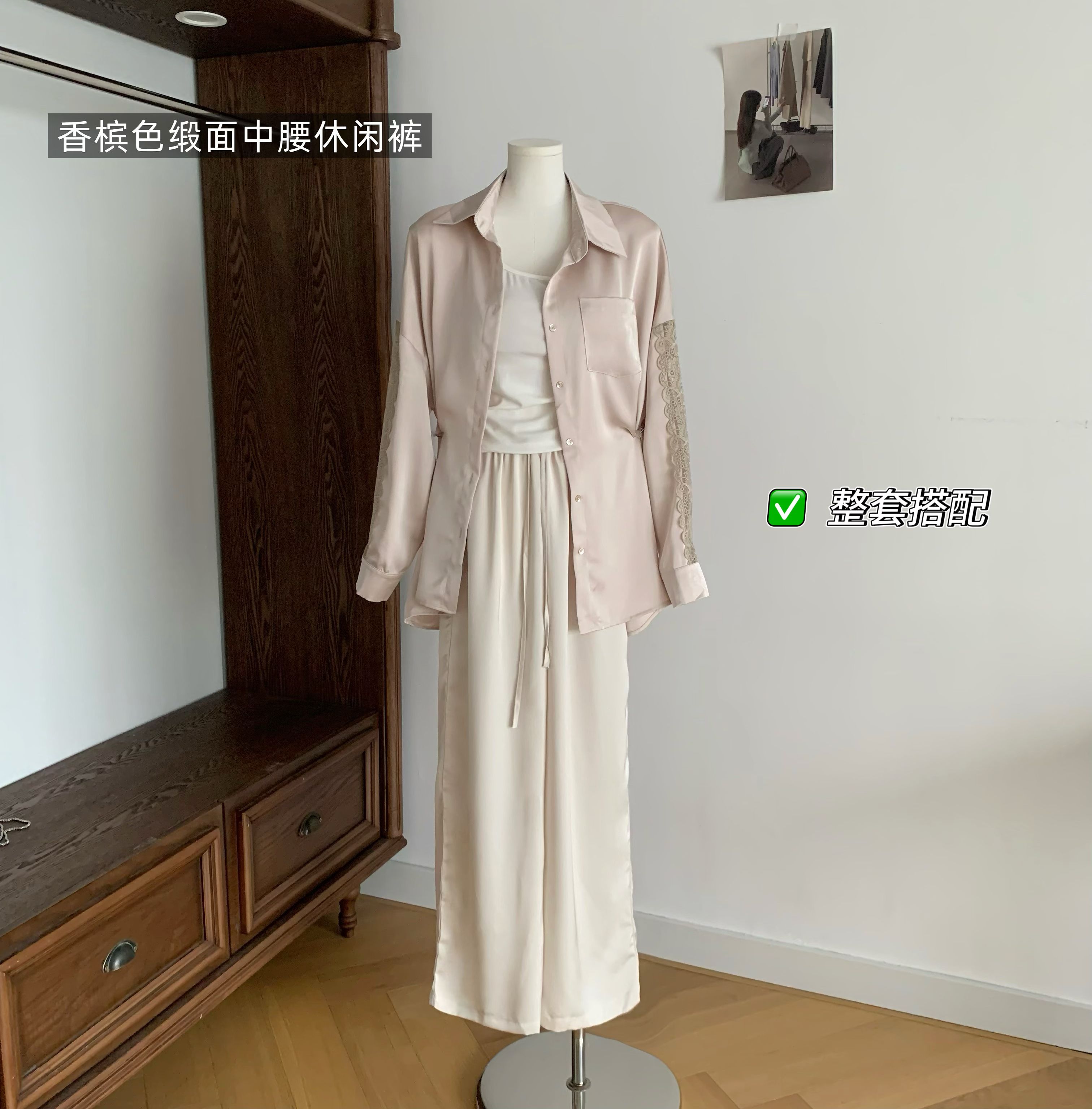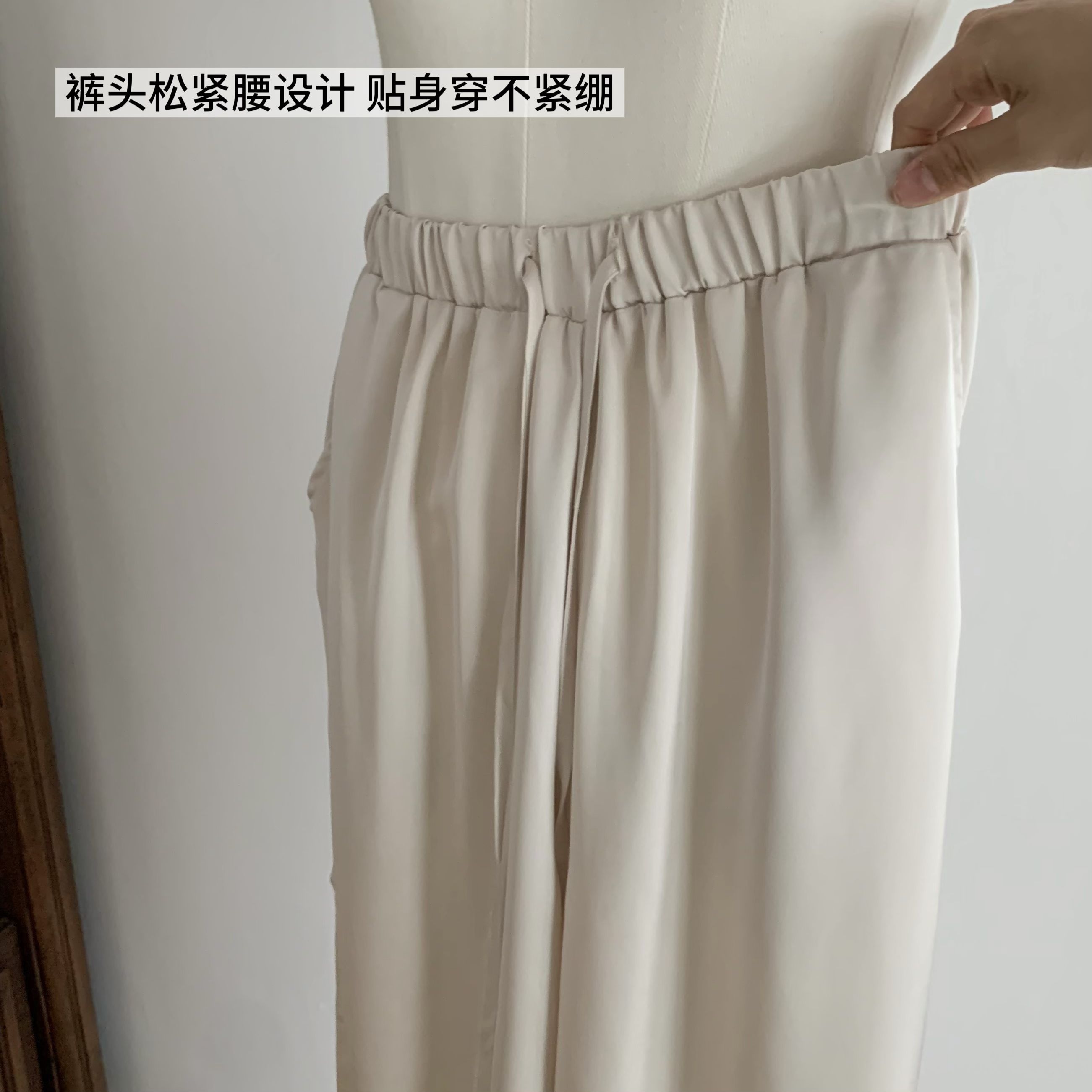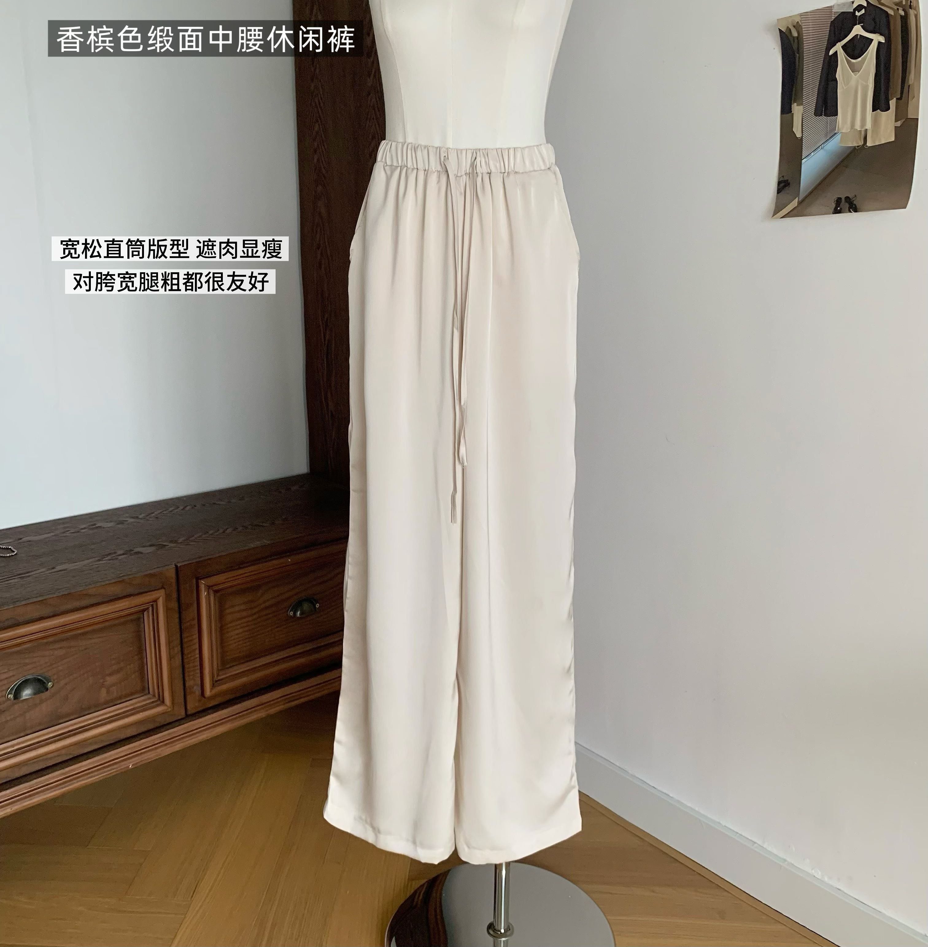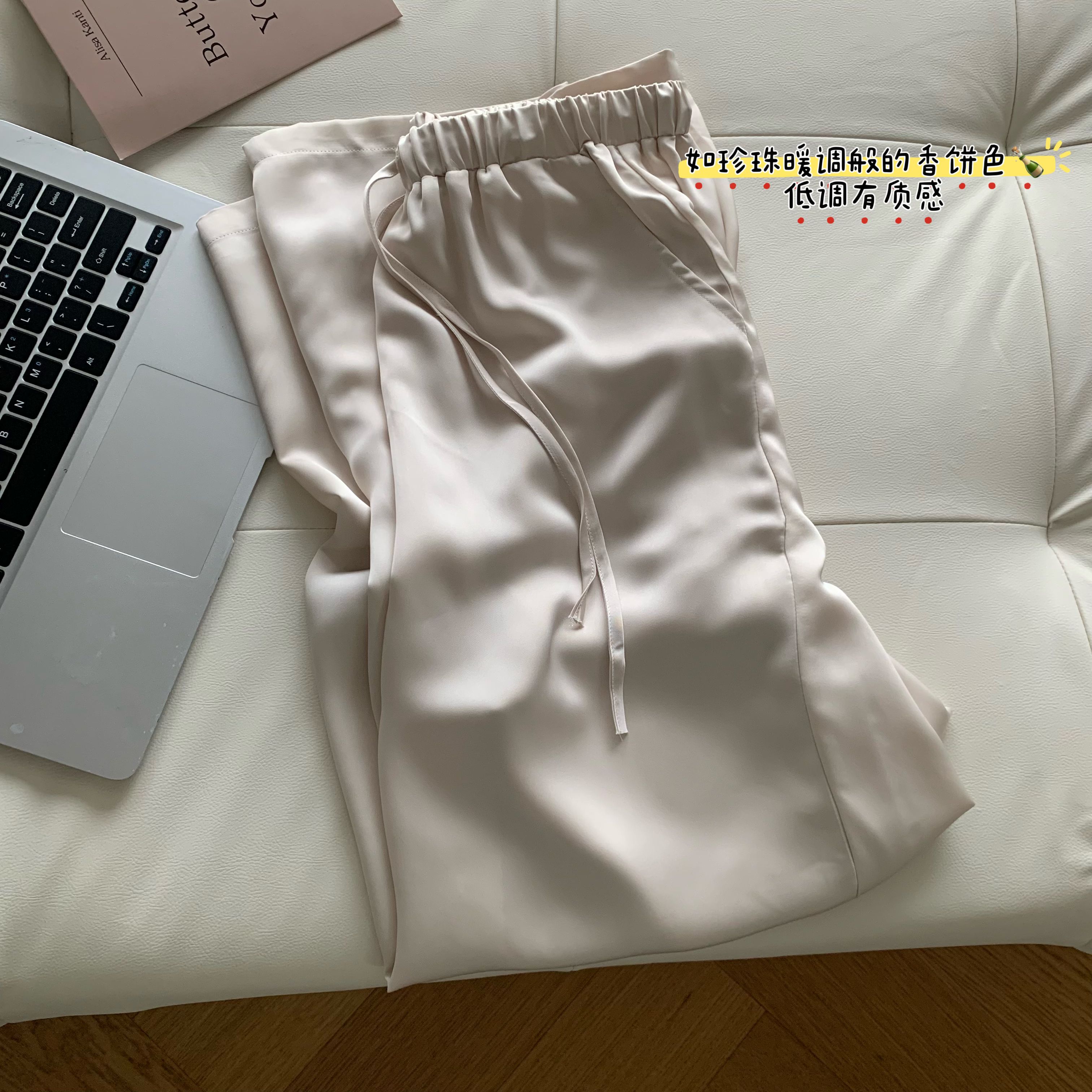fart shop 우아함 프롤로그 샴페인 질감 센스 새틴 중간 허리 캐주얼 바지 여성 봄 여름 스트레이트 팬츠