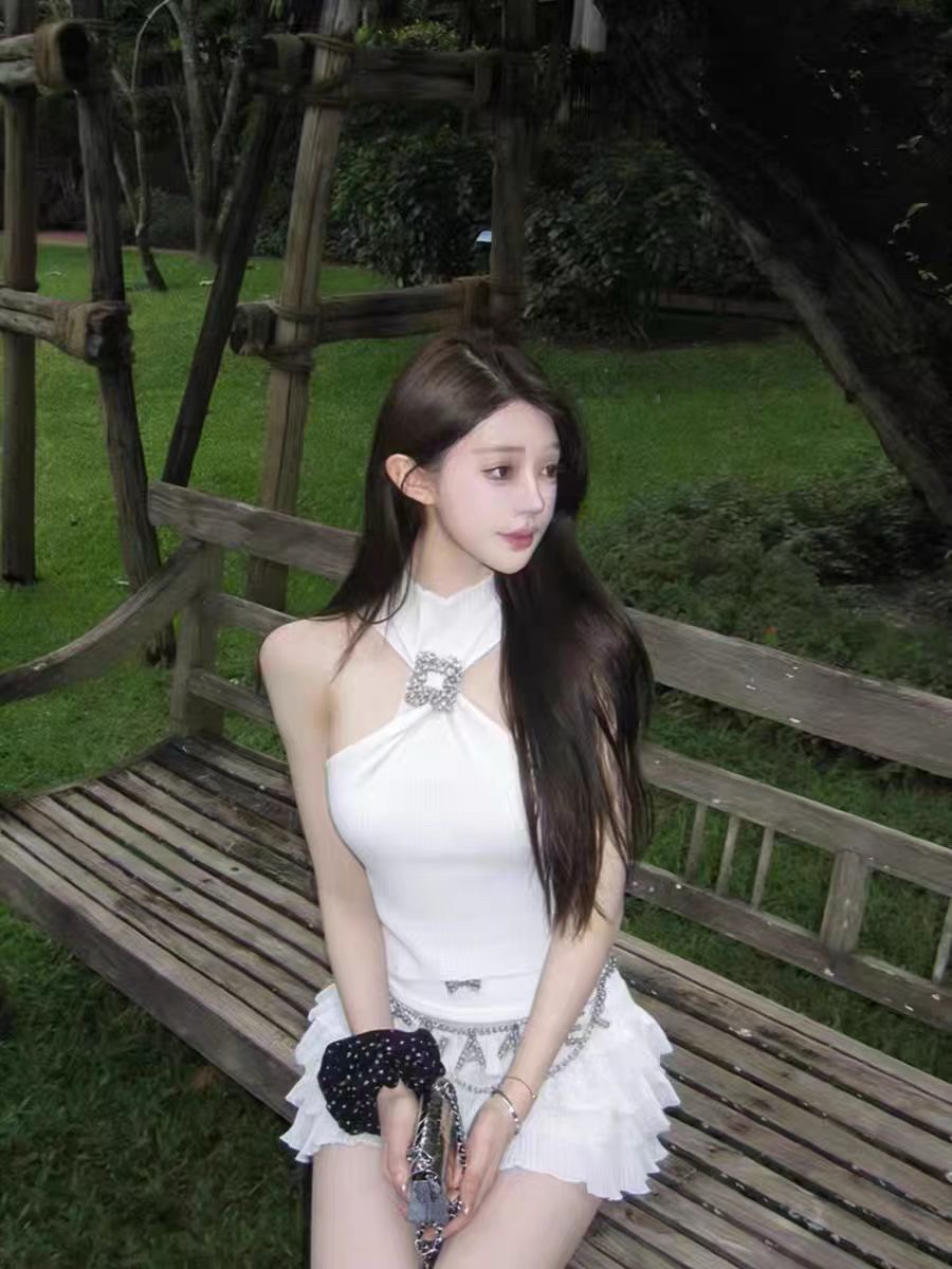 2026 여름 새로운 민소매 허리 수축 니트 스웨터 불규칙 트임 밑단 외국 가스 연령 감소 맨위