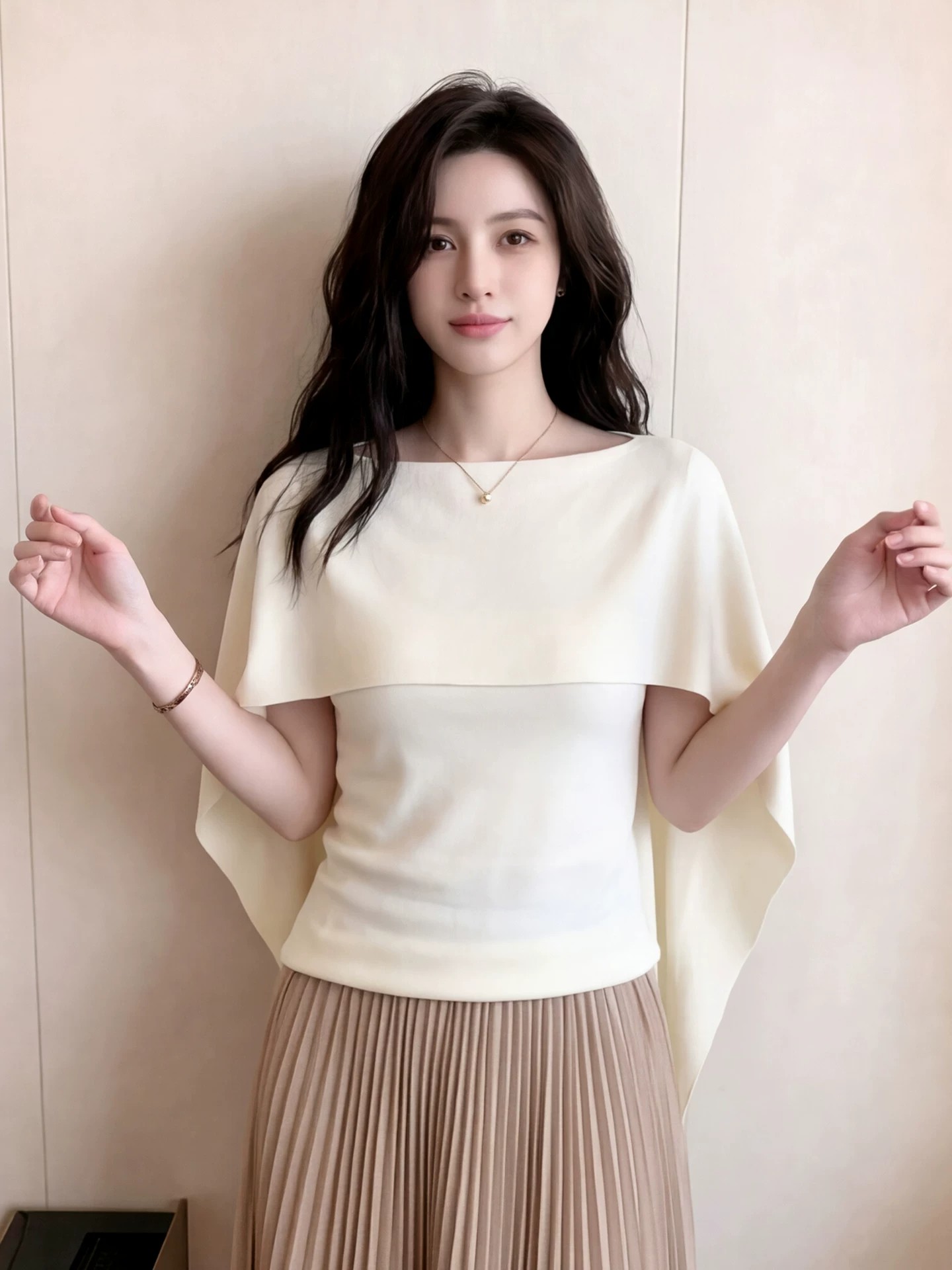 있음 도착 부드러운 치엥 여름 한 부서 여신 망토 디자인 센스 슬림해 보이는 얼음 센스 품격
