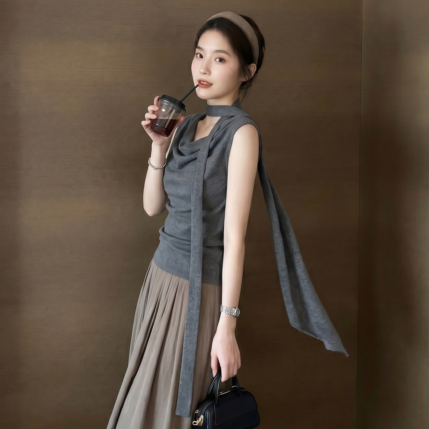 프랑스식 작은 대중 고급 센스 V넥 단추 스트랩 베스트 여성 코트 2026 여름 새로운 루즈핏 다용도 세트