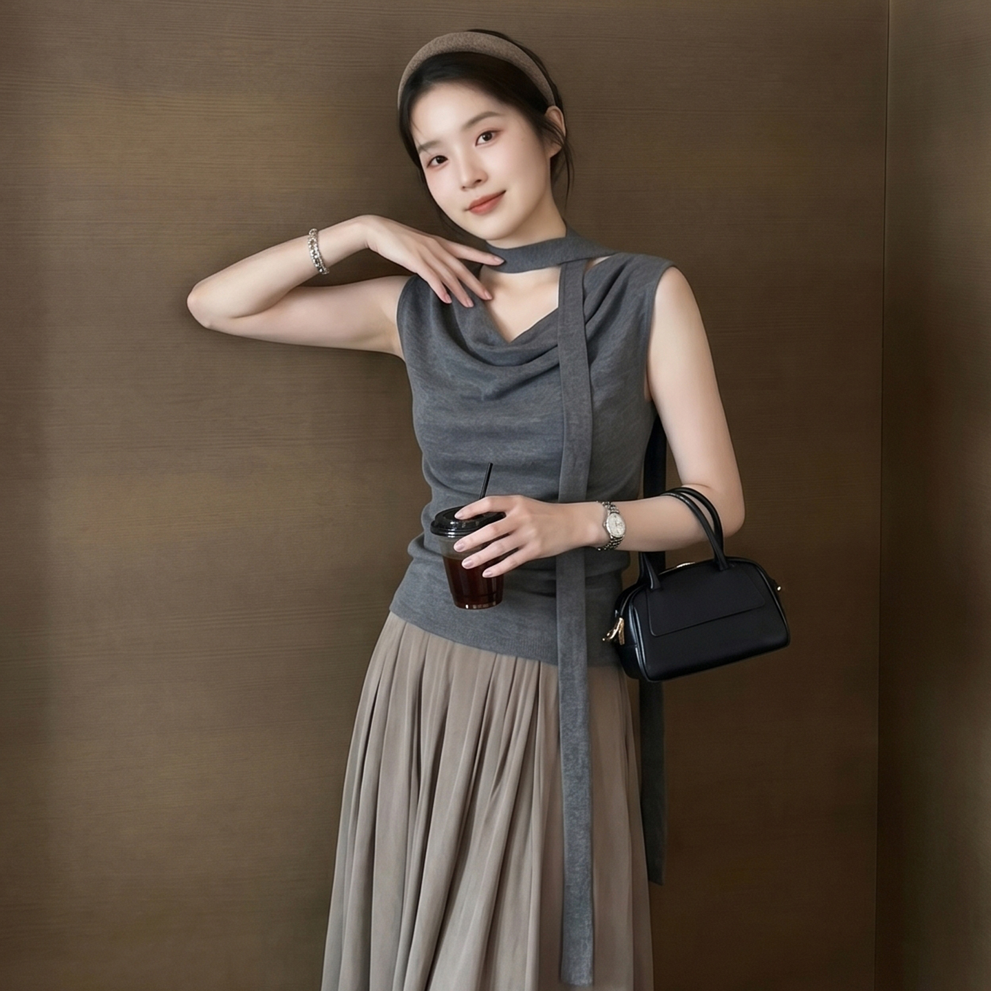 ai 정가 니트 캐미솔 2026 봄 고급 센스 오프숄더 몸매 가꾸기 행침 목 민소매 맨위