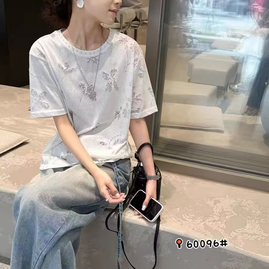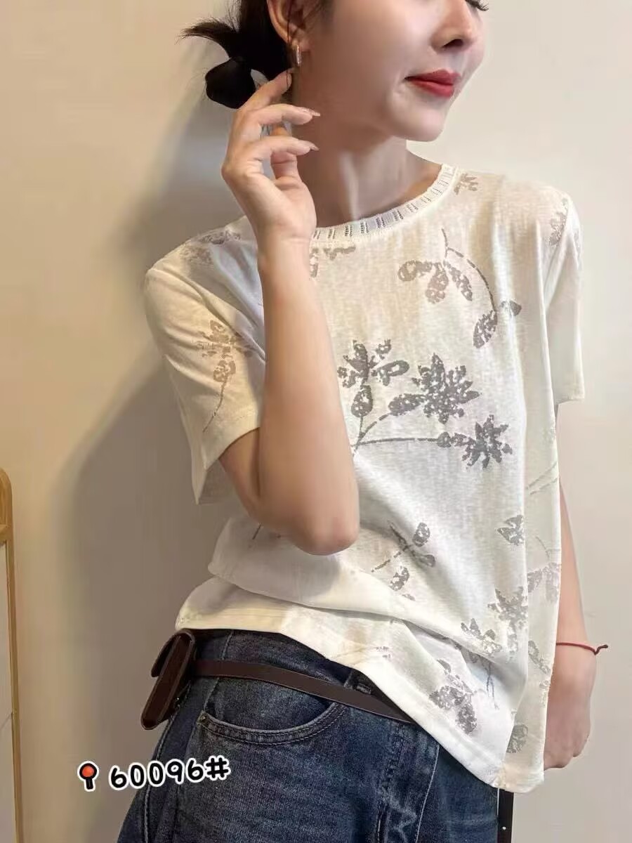 재고 있음 부드러운 한 부서 바람 꽃 홀로우 아웃 반팔 티셔츠 라운드 넥 다용도 품격 맨위 여성
