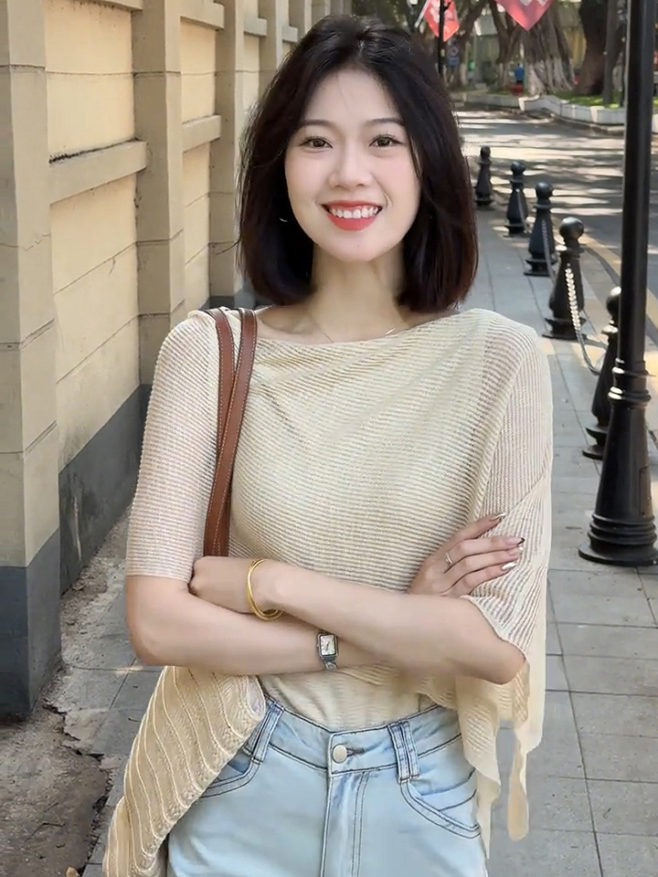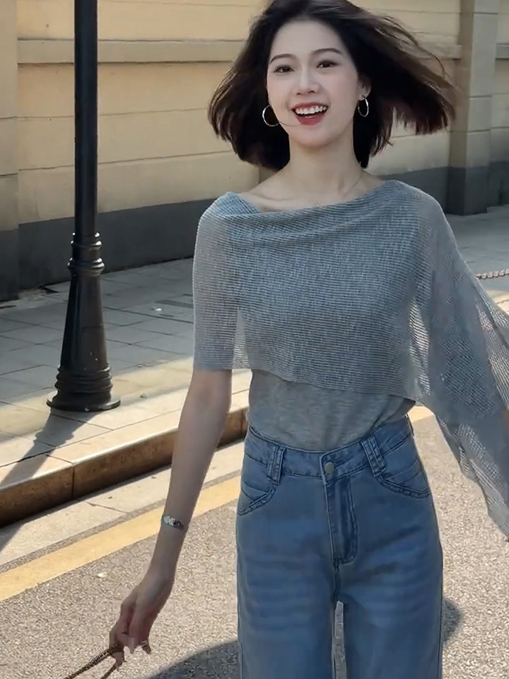 있음 도착 부드러운 치엥 여름 한 부서 여신 망토 디자인 센스 슬림해 보이는 얼음 센스 품격