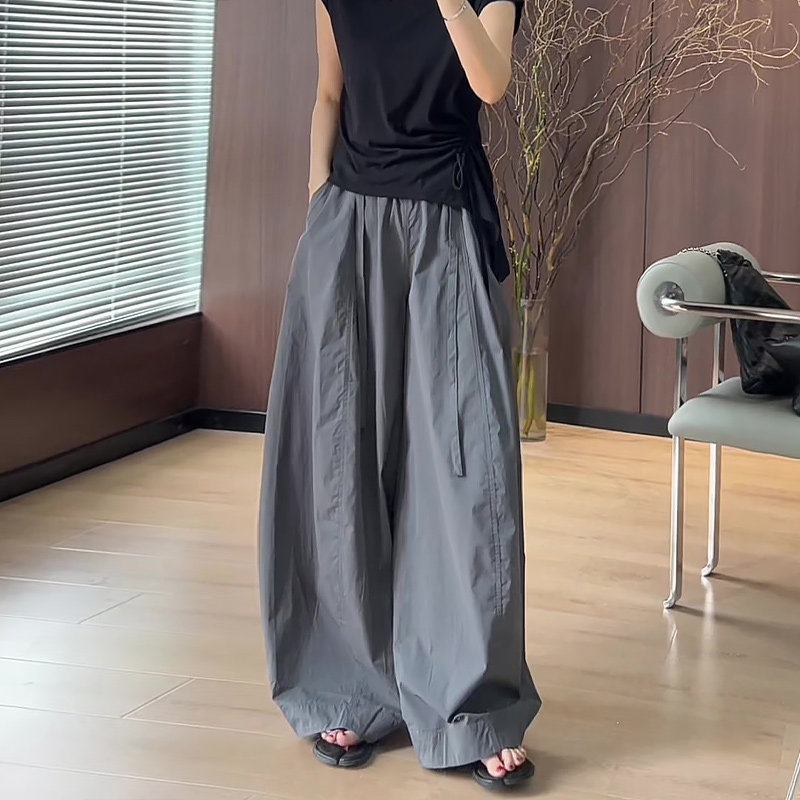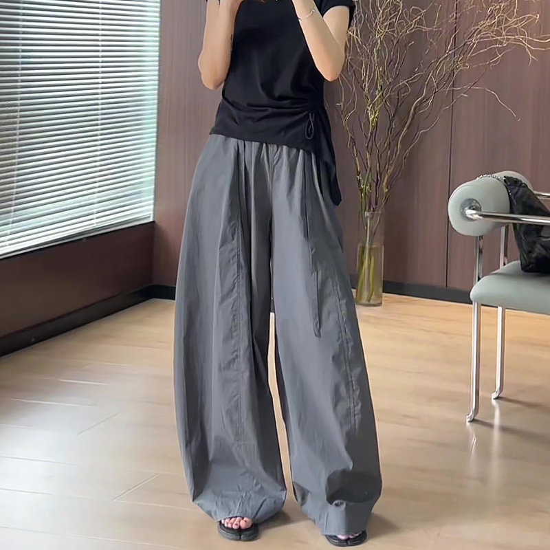 차가운 와이드 레그 팬츠 여름 섹션 캐주얼 얇은 스타일 루즈핏 느긋한 운동 긴 바지