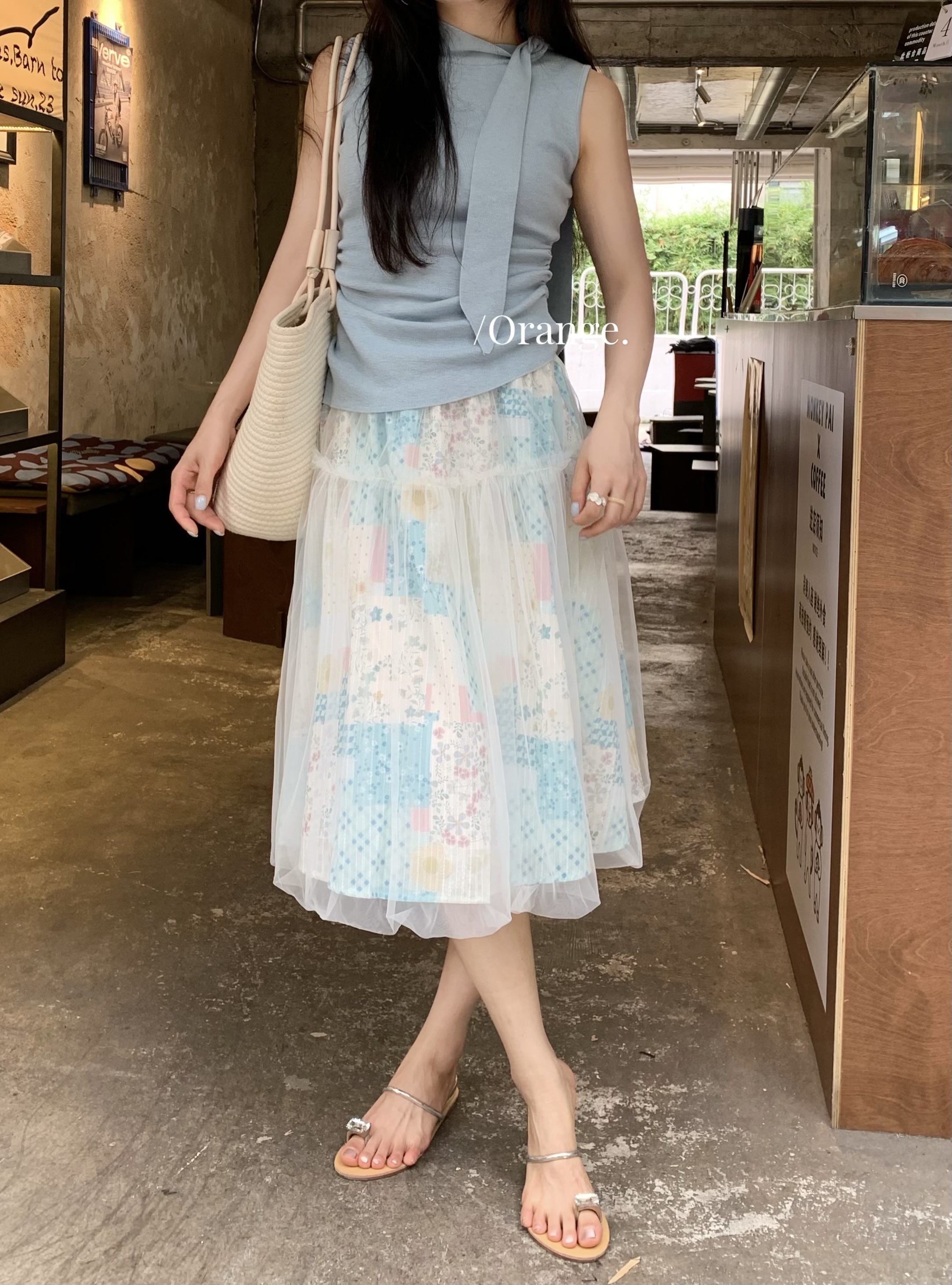 실사 정가 여름 망사 꽃밭 반신 스커트
