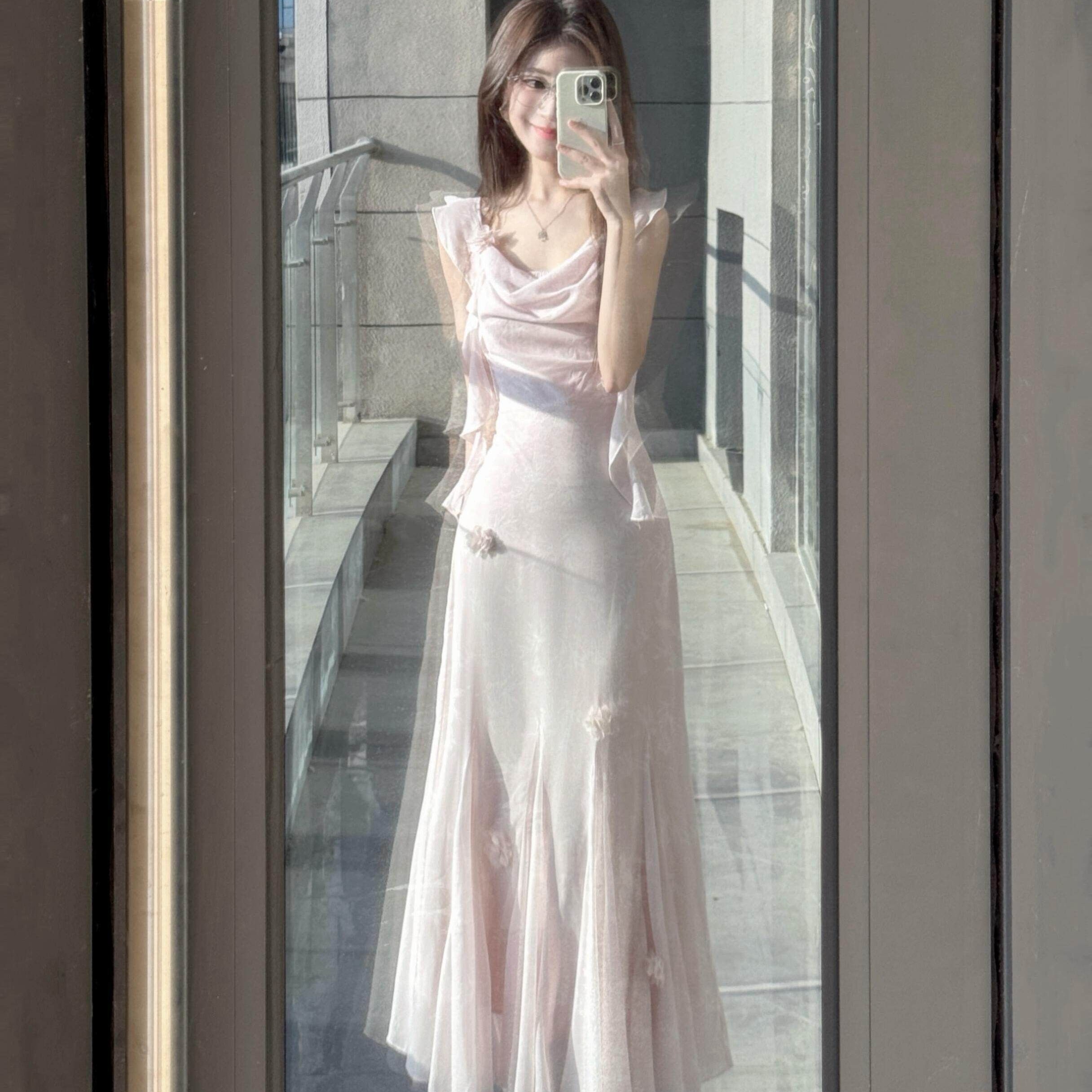 흔들다 칼라 감정 ~ 중 치마 해변가 휴가 프랑스식 고급 슈퍼 잘 생긴 아름다운 고유 한 핑크색 드레스