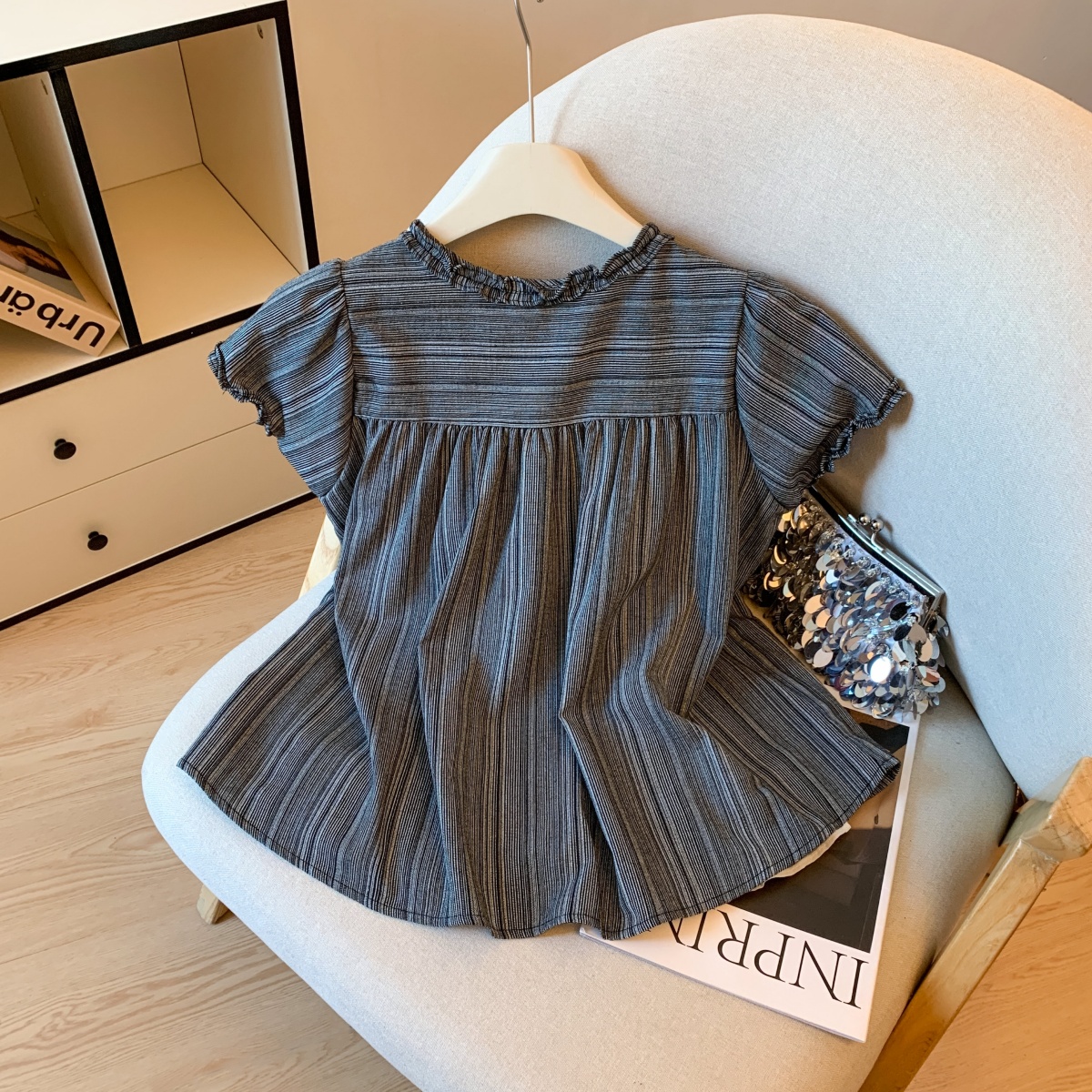 미니멀리즘 고급 품격 작은 날다 소매 짠 셔츠 여성 2026 여름 새로운 슬림해 보이는 허리 수축 다용도 맨위 외국 가스