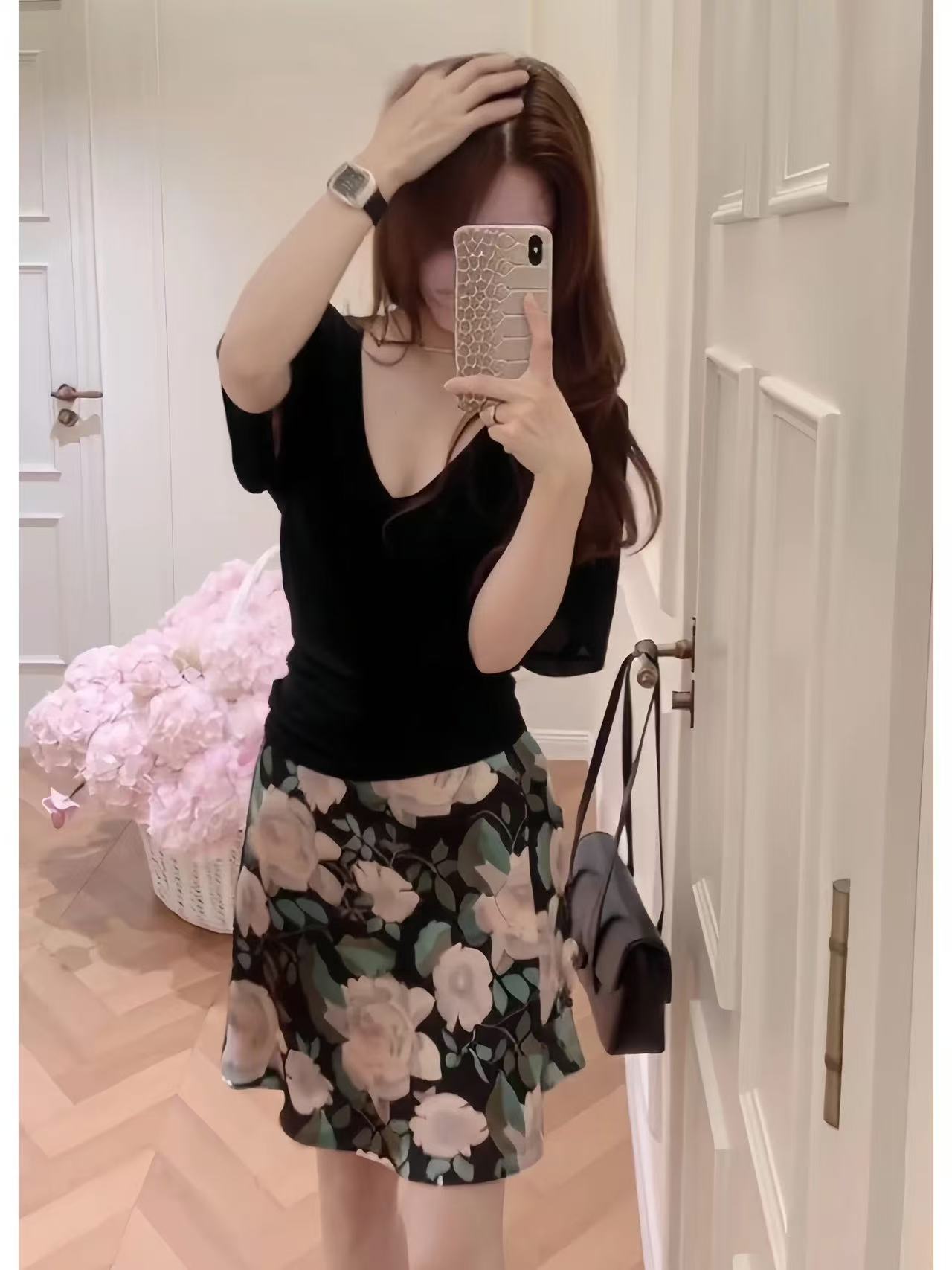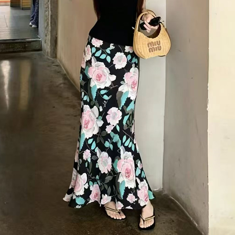 흔들어서 톤 생방송 폭발 있음 선적 프랑스식 꽃무늬 아세트산 새틴 반신 스커트 슬림해 보이는 스트레이트 인어 꼬리 타이트 스커트 롱 스커트